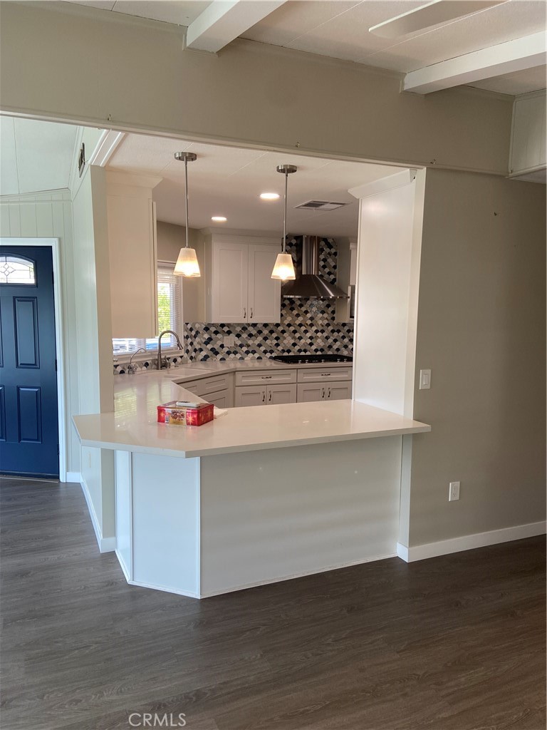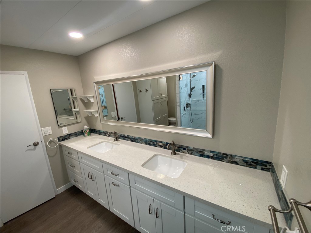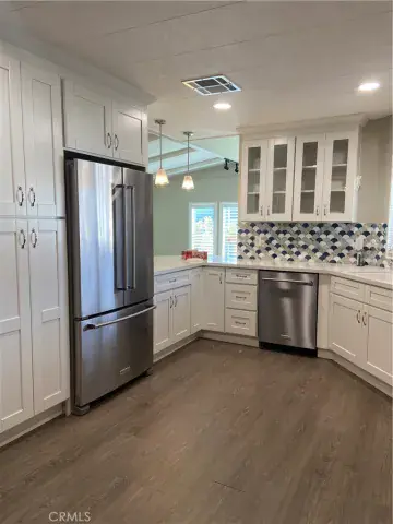 Looking for Quiet Relaxation? You don’t want to miss this Beautifully Remodeled Home in a 55+ park. 6 years ago with designer vinyl plank flooring throughout. The Kitchen was completely gutted and reimagined with quartz counters, all new cabinets and stainless appliances, Open to both Living Room and Family Room. The remodel included the Primary Bath Room which features Dual Vanity with custom lighting, Quartz counters. Separate bath and shower. Enjoy the year round amenities such as: 9-hole golf course, Olympic-sized pool, spa, steam rooms, clubhouse, billiard and card rooms. Carport facilitates 2 cars and a motorcycle and a storage shed. There is ample guest parking throughout the park. Check with Park Manager regarding RV parking.