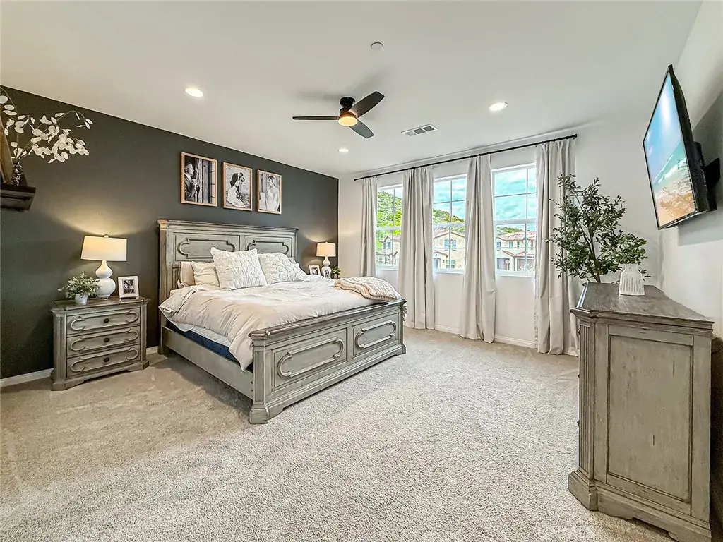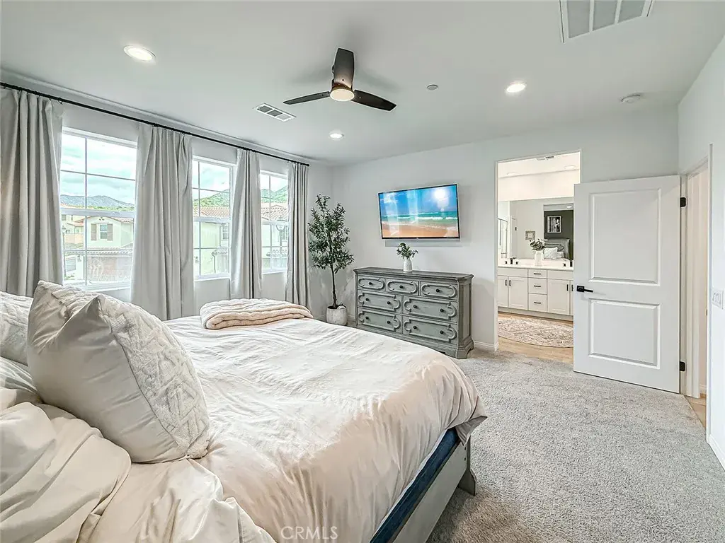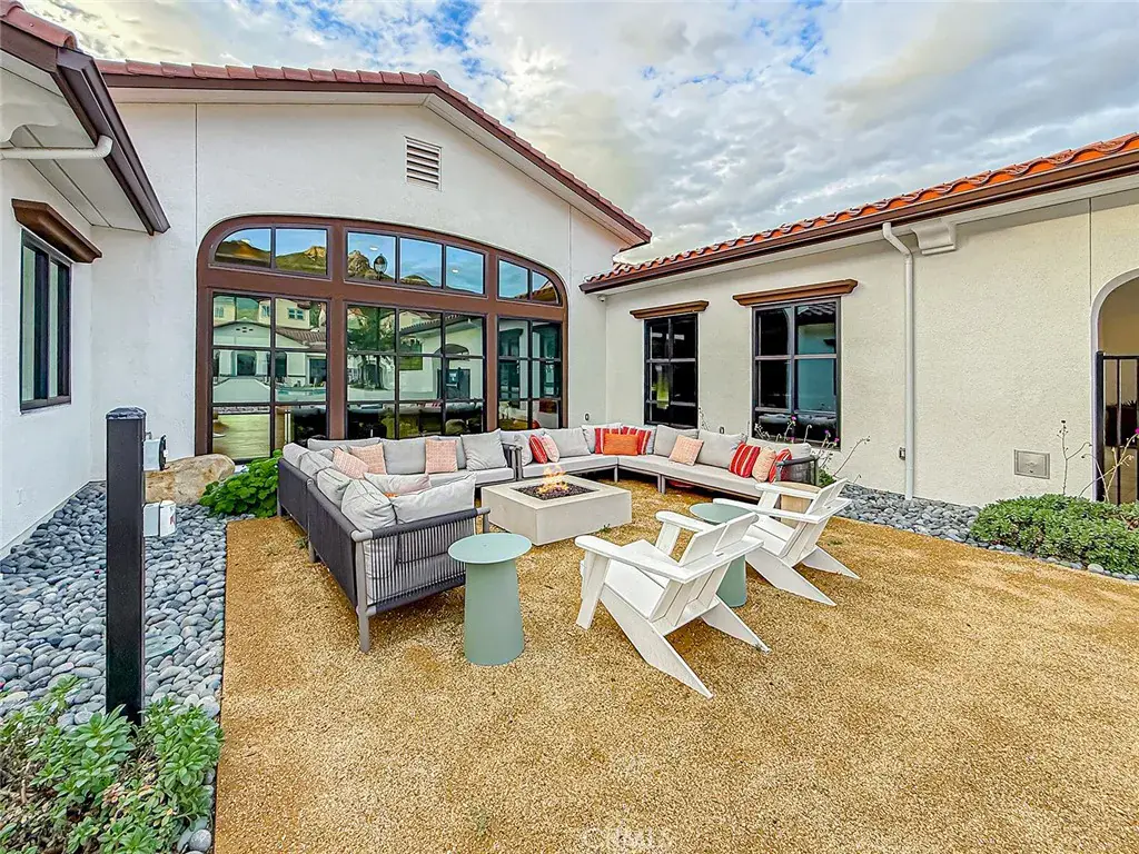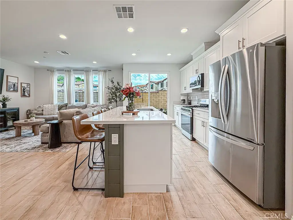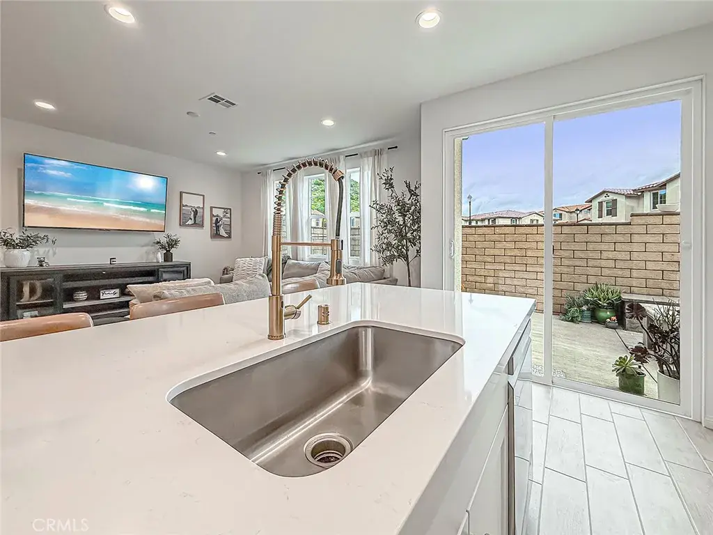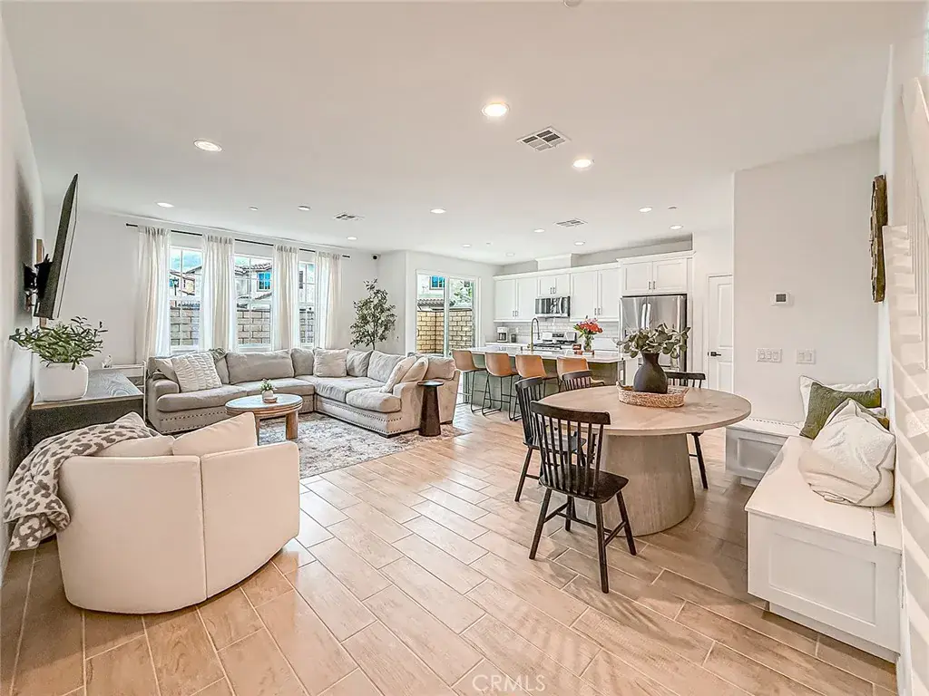 Welcome home! This meticulously upgraded four-bedroom, two-and-a-half-bathroom residence encompasses approximately 1,725 square feet of refined living space within the contemporary, campus-inspired Anacapa Canyon community of Camarillo. Ideally positioned as a desirable end unit, the home enjoys an abundance of natural light through additional windows, thoughtfully capturing the region’s temperate coastal climate. At the heart of the home, the upgraded kitchen serves as a striking focal point. Appointed with custom countertops and backsplash, a statement island adorned with shiplap detailing, a deep recessed sink, stainless steel appliances, and bar seating for casual dining, the space balances style and functionality. Tile flooring extends throughout the main level, where built-in bench seating with integrated storage creates an inviting gathering area. A nearby pantry and additional storage closet enhance practicality, while the open-concept design seamlessly connects the kitchen, dining, and living areas for effortless entertaining. Upstairs the primary suite offers a serene retreat, complete with a spacious walk-in closet and a beautifully upgraded ensuite bath featuring dual vanities, custom tilework, and a built-in shower bench. Mountain vistas further enhance the suite’s sense of openness and tranquility. All secondary bedrooms, along with an upstairs laundry area, are thoughtfully situated on the same level. Outdoor living is equally well considered with a built-in fire pit, and bench seating—an ideal setting for both intimate evenings and lively gatherings. Additional highlights include central air conditioning, a direct-access two-car garage with finished flooring, a built-in bar and storage, a tankless water heater, and a whole-house water softener system. Modern black and gold hardware and fixtures provide a sophisticated design continuity throughout, while the upgraded entryway—featuring beadboard wainscoting and coat hooks—offers both elegance and everyday functionality. Residents of Anacapa Canyon enjoy an array of resort-style amenities, including a children’s park, dog park, and an expansive clubhouse equipped with a kitchen, billiards, and shuffleboard. Outdoor gathering spaces feature covered patios, cabanas, fire pits, and barbecues, complemented by a large pool, children’s pool, and 2 spas. A 24-hour fitness center with yoga studio, along with scenic trails and parks woven throughout the community, completes this exceptional offering.