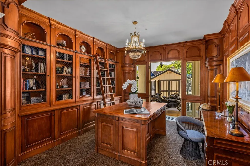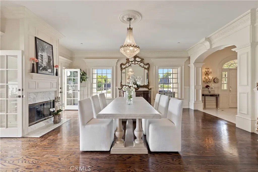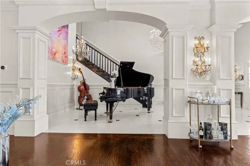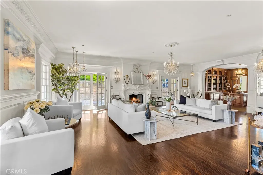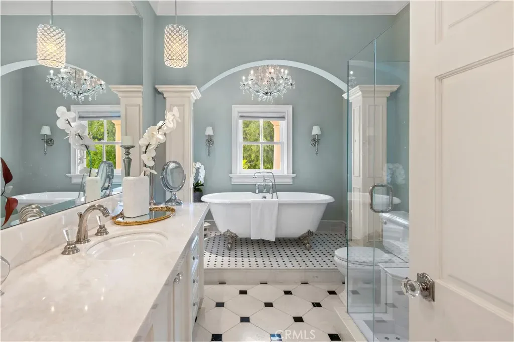 Palatial colonial-style main residence with 35-foot entry ceilings, library, gourmet kitchen, formal dining room, and expansive entertainment areas