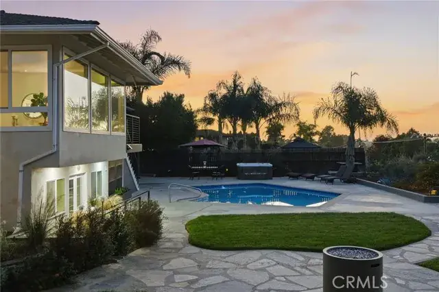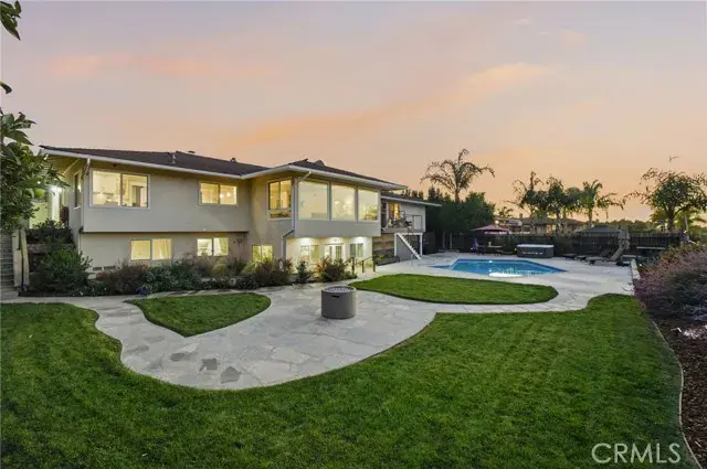 Outside, enjoy the resort style landscaped back yard with recently plastered pool, spa, fire pit and a variety of fruit trees throughout the property which is a peaceful, private and designed for relaxation.
