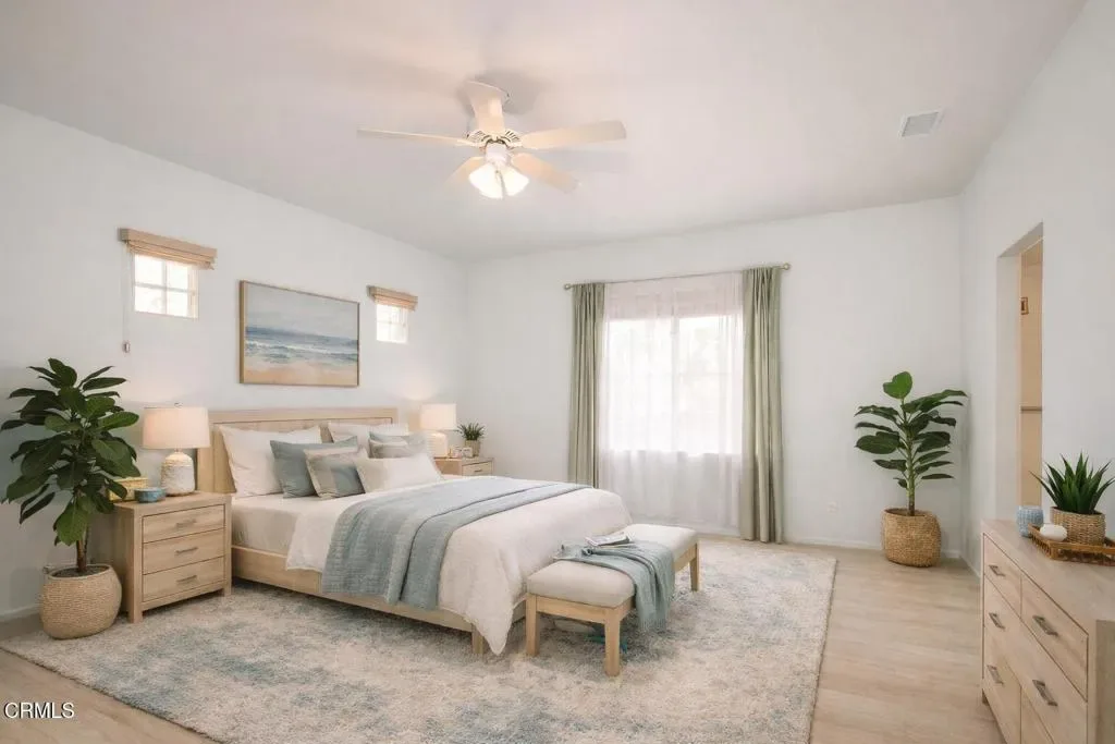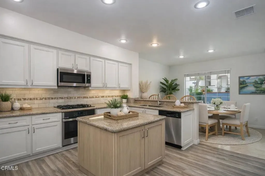 Welcome to Palm Colony, one of Camarillo’s most desirable gated communities offering resort-style amenities and a vibrant lifestyle. This beautifully positioned corner-unit condominium features 3 bedrooms, 3 bathrooms, and approximately 1,860 sq ft of thoughtfully designed living space. Freshly painted and filled with natural light, the home offers a warm and inviting atmosphere throughout.The flexible floor plan includes a main-level bedroom or office with a full bathroom, ideal for guests, extended family, or a private workspace. The updated kitchen showcases granite countertops and custom cabinetry, opening seamlessly to the dining area and spacious living room with direct access to a private side patio–perfect for relaxing evenings or weekend barbecues (patio furniture and BBQ grill included).Upstairs, both bedrooms are private primary suites with en-suite bathrooms, offering comfort and privacy. The main suite features a cozy fireplace and walk-in closet, creating a peaceful retreat at the end of the day. A dedicated indoor laundry room adds everyday convenience.Additional highlights include a direct-access two-car garage, ample guest parking, gated entry, and beautifully maintained greenbelts throughout the community.Palm Colony residents enjoy resort-style amenities including a pool, spa, tennis courts, racquetball, fitness center, and RV/boat parking–perfect for those who enjoy an active lifestyle. Ideally located near the Camarillo Premium Outlets, dining, shopping, and convenient access to the 101 Freeway.Some photos have been virtually staged to illustrate the home’s potential.A wonderful place to call home for those seeking comfort, lifestyle, and community.