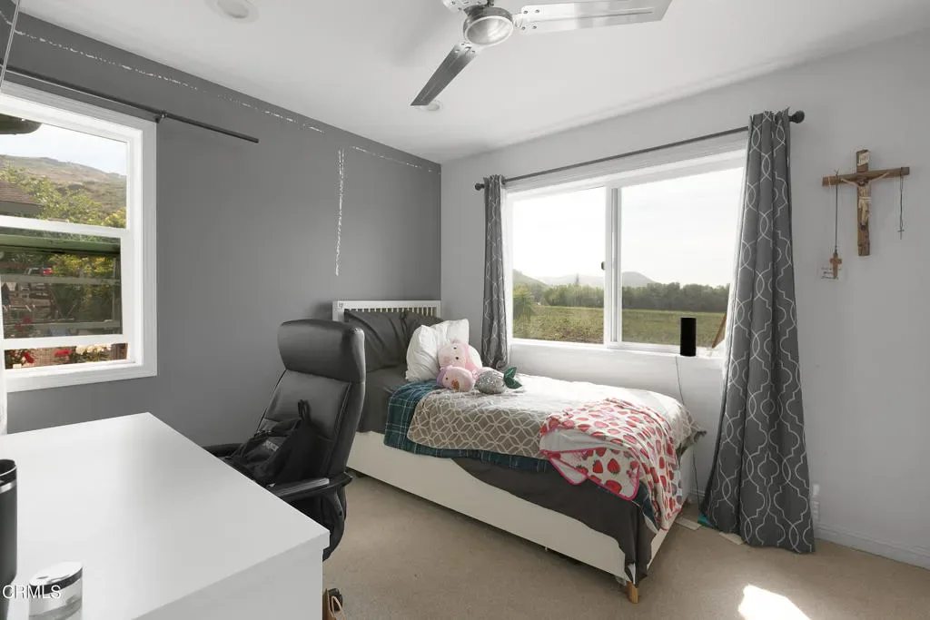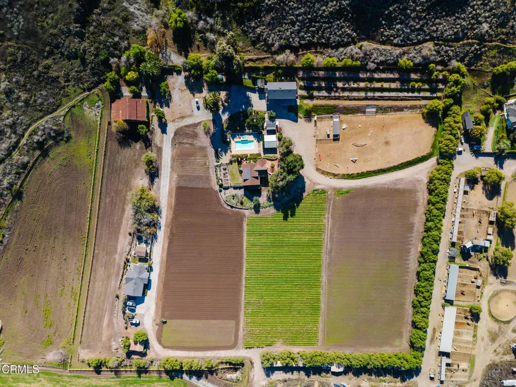 Extraordinary 10-Acre Gated Estate – Santa Rosa Valley HideawayWelcome to an unparalleled 10-acre private estate nestled in the heart of the pastoral Santa Rosa Valley, an exceptional ‘hideaway’ where natural beauty, privacy, and versatility converge. Tucked behind security gates and approached by a long, tree-lined driveway framed by majestic pepper trees, this rare offering borders the serene expanse of Wildwood Regional Park, delivering breathtaking views and ultimate tranquility.The property features three distinct structures, creating endless possibilities for multi-generational living, income potential, or a fully self-sustaining lifestyle:The main residence, beautifully remodeled, offers approximately 5-7 bedrooms and 3 bathrooms, showcasing an open-concept design, wide-plank flooring, and seamless indoor-outdoor living. Expansive windows and doors frame picturesque views, while the resort-style pool and spa create a luxurious retreat ideal for relaxation and entertaining.A newer secondary home on the eastern portion of the property features 3 bedrooms, 2 bathrooms, and a 2-car garage, providing a perfect guest residence, extended family quarters, or private office retreat.The recently constructed Agricultural Building is a standout feature–offering four large garage bays, two bathrooms, and a beautifully finished, condo-style living space, ideal for a variety of uses including workshop, studio, or additional living quarters.For equestrian and agricultural enthusiasts, the property is fully equipped with a large historic reinforced barn with concrete foundation, multiple outbuildings including hen houses and a goat house, and an expansive approximately 1/2-acre fenced grass dog agility field.Infrastructure is exceptional with a private well, two 5,000-gallon water storage tanks, 600-amp electrical service, three septic systems, three propane tanks, and two fire hydrants, ensuring both functionality and preparedness. The gently rolling acreage offers abundant space for farming, orchards, vineyards, or recreational use, all while enjoying the peaceful rural setting just approximately one hour from West Los Angeles.This is more than a property–it’s a lifestyle. A rare opportunity to live, create, and thrive in one of Ventura County’s most coveted and picturesque communities. Note: the square footage quoted is an ESTIMATE by estimating sq.ft of main residence & estimating sq ft of newer building.