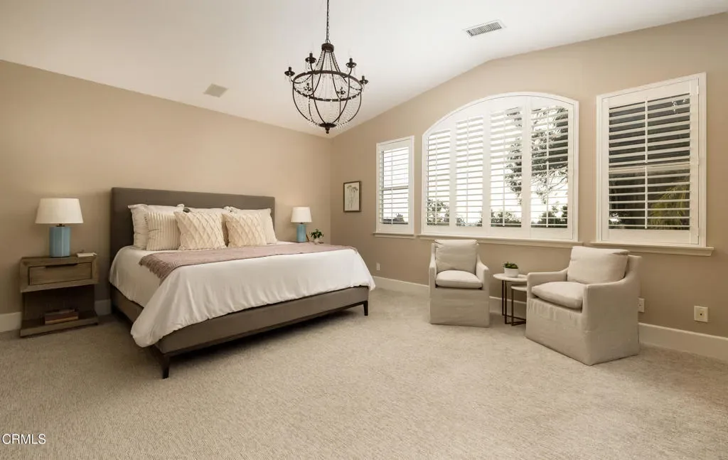Status: Pending. No open houses scheduled. Welcome to Casa Autlan, nestled on the ocean side of the Camarillo Foothills in the prestigious, gated Sterling Hills Golf Course community. As you pass the outdoor fountain and enter through the front door into the circular foyer, you will be welcomed by the soaring ceilings, views, and abundant sunlight. Complete remodel has been done along with an addition to create a large chef’s kitchen to family room open concept, as well as an oversized second floor patio was added which allows you to enjoy the sweeping golf course views all the way to the Topa Topa Mountains and beyond. There are no steps to the front door and throughout the first floor. There is a private entrance guest suite completely separate from the rest of the house. Resort-style waterfall salt water pebble tech pool and spa with built-in BBQ, outdoor fridge and fire pit welcomes you to your private oasis out back. Wide plank European Oak Wood Floors. Stainless steel Thermador Appliances. 60” double wide Built In Refrigerator. Microwave Drawer. Pot filler spout over stove. 48” Dual Fuel Stove. With Pottery Barn and Restoration Hardware chandelier and lighting. Massive 7 seat island with storage all the way around. Solid wood dovetail cabinetry. Leathered granite countertops. Built-in entertainment center, two gas fireplaces. Top of the line pet and stain resistant carpet with extra plush pad. Large walk-in closet. Plantation shutters throughout. Oversized custom paver driveway. Security system & surround sound wired. Ideally situated near Camarillo Airport for private aviation, the Camarillo Premium Outlets for mall shopping, the new Costco, fine dining, nearby beaches, and major commuter routes, offering convenient access throughout Ventura County and beyond.