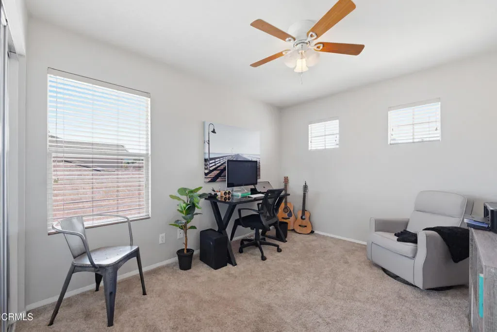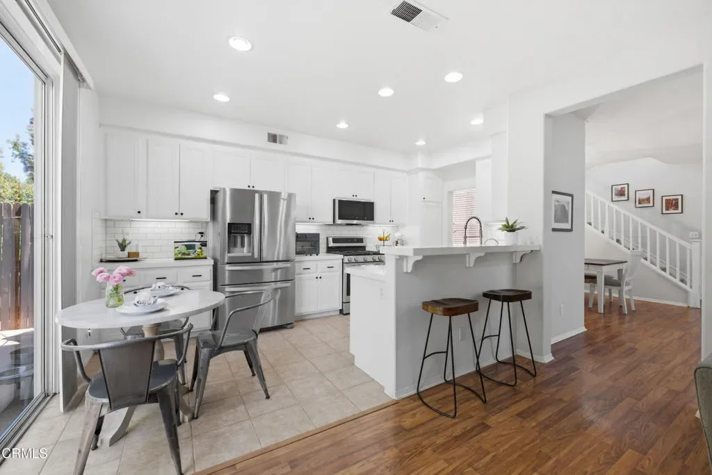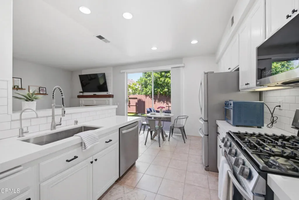 Beautiful 3 bedroom + loft (potential 4th bedroom) and 3 bathroom home located in the highly desirable Mission Oaks community. Ideally situated within close proximity to La Mariposa Elementary School, Pitts Ranch Park, and the creekside bike path.A gated front entry welcomes you into a light and bright interior featuring high ceilings and an inviting, open-concept floor plan. Upon entry, you are greeted by a formal living and dining room that seamlessly flows into the family room and updated kitchen–perfect for both everyday living and entertaining. The kitchen has been tastefully upgraded with quartz countertops, white cabinetry, and newer stainless steel appliances.Upstairs, a versatile loft offers the potential to be converted into a fourth bedroom, home office, or additional living space to suit your needs.The backyard provides a tranquil retreat with a patio and low-maintenance turf, creating the ideal setting for relaxing or entertaining outdoors.Residents enjoy access to exceptional community amenities including two pools and spas, fitness center, greenbelt areas, playground, and RV parking–all with a low HOA fee.An excellent opportunity to own in one of Camarillo’s most sought-after neighborhoods.