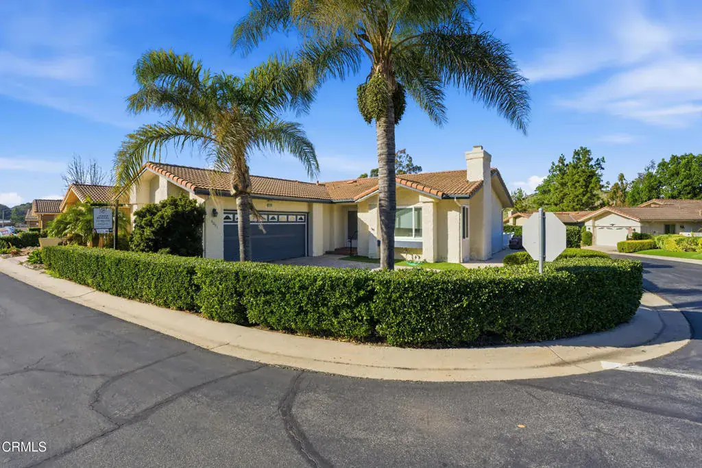 Your serene retreat awaits in this sought after 55+ gated golf course community, where luxury and nature blend seamlessly. This rare corner lot, single story 2 bedroom 2 bath home is perfectly positioned against a breathtaking mountain backdrop, offering more than just a residence, it’s a lifestyle. Wake up to sweeping sunrise views over the peaks, enjoy morning coffee accompanied by the sounds of nature, and unwind with golden hour strolls along the scenic trails just in your backyard. A true standout in the community – a two car driveway, corner location, and nearby guest parking. Inside, the well maintained interior showcases neutral wood like flooring and upgraded windows. The vaulted ceilings, and a cozy fireplace create a warm and inviting living space ideal for relaxation. Recent upgrades include a newer water heater, furnace, and insulation. The dining area opens to a private, low-maintenance patio enclosed by a brand-new durable fence, perfect for enjoying the Camarillo climate. Double doors lead to the spacious primary ensuite, offering a private retreat with direct patio access for seamless indoor-outdoor living. A spacious laundry room can be converted into a bonus room or used for storage. Enjoy resort-style living with HOA amenities including a clubhouse, sparkling pool, and scenic walking trails. Hop in your golf cart and cruise to Camarillo Springs Golf Course just around the corner. Easy access to the 101 Freeway with LA and Santa Barbara 50 miles away. Embrace peaceful surroundings, modern comforts, and the ease of 55+ living – your resort lifestyle begins here.