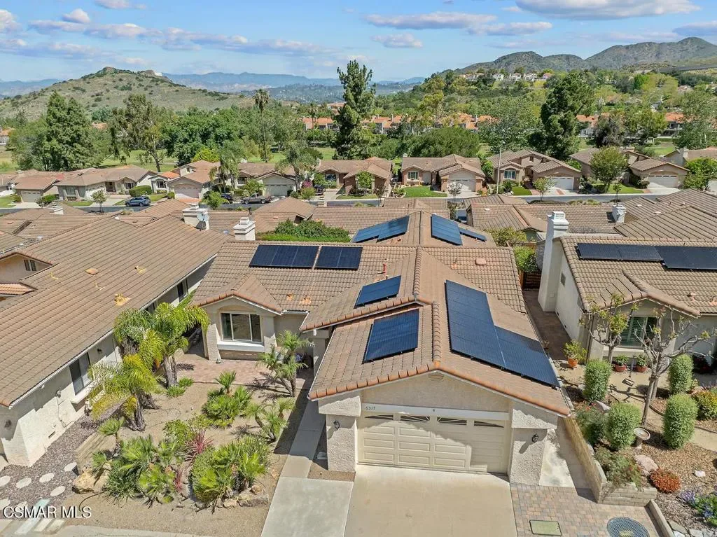 Stunning View Home in Camarillo Springs 55+ CommunityWelcome to your private retreat in the highly sought-after Camarillo Springs community. This beautifully upgraded home at 6317 Gitana Avenue offers a rare blend of privacy, modern enhancements, and breathtaking mountain views from both the front and back.Enjoy tranquil mornings on your patio watching deer wander the hills–there are no homes directly across the street, only unobstructed natural beauty. The outdoor space is thoughtfully designed with low-maintenance, drought-resistant landscaping, a paved patio, and an extended walkway, perfect for relaxing or entertaining.Inside, the open-concept floor plan features soaring ceilings, rich wood-like flooring, and elegant travertine finishes in the bathrooms. Both bedrooms include ensuite baths, offering comfort and privacy for residents and guests alike. Plantation shutters, newer double-pane Andersen windows, a newer dishwasher, water heater, new HVAC system, and updated plumbing all contribute to the home’s true move-in-ready appeal.Professionally upgraded by a master electrician, the home includes:200-amp electrical panel with dedicated circuitsTesla Wall Connector charging stationWhole-house fanWhole-house water softener with advanced MERV-16 HEPA filtrationGarage convection cooling system (manual and thermostat-controlled)Pre-wiring for security cameras and a second auto battery chargerSolar panels and backup generator supporting essential systems, including TV and refrigerator.Other updates include New HVACPlantation shuttersabove garage attic storage reinforced pull down stairway accessattic access fire rated doorGarage Cabinetspavers extending the driveway newer dishwaherrefrigerator instant hotThe fully insulated garage maintains a stable year-round temperature, ideal for projects, storage, or hobby use.Step outside to a second private patio with stunning mountain views, framed by colorful vines and offering complete seclusion. The property is fully fenced and gated for added privacy.Additional highlights include:Guest parking conveniently located across the streetCommunity RV parking availableAccess to an 18-hole golf course with pro shop, tournaments, and organized outingsNearby dog park and scenic walking trailsOptional solar system available for purchaseResidents of Camarillo Springs enjoy resort-style amenities, including a pool, spa, fitness center, and clubhouse with social clubs and activities tailored to an active 55+ lifestyle. The HOA also includes high-speed internet and wireless service through Frontier Communications.The home was completely remodeled approximately eight years ago following local fire and flood events, with full mitigation documentation available for added peace of mind.This is a rare opportunity to own a turnkey home with exceptional upgrades, privacy, and unmatched views–don’t miss it.