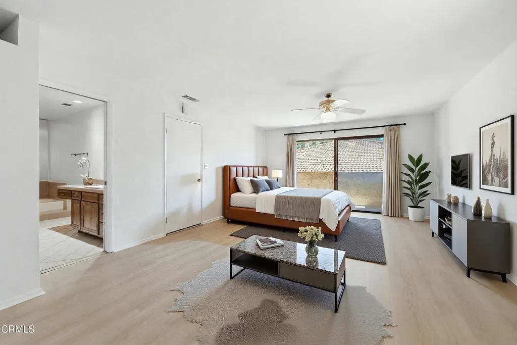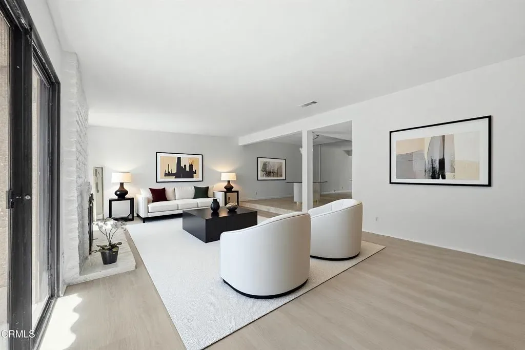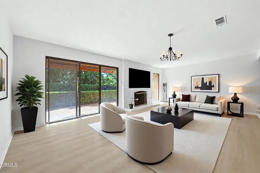 Ideally located within a private enclave of just 12 homes directly across from Nancy Bush Park, this inviting home offers an effortless blend of comfort, scale, and thoughtful updates. This well-designed floor plan features 4 bedrooms including a highly desirable main floor bedroom and bath ideal for guests, extended family or a private home office. A welcoming two-story foyer sets a memorable first impression and introduces the home’s elevated aesthetic. At the heart of the home, the spacious great room is anchored by a fireplace and enhanced by new vinyl wood flooring, creating a warm yet modern foundation. The space flows seamlessly to a charming brick patio, an inviting setting for relaxed outdoor gatherings. The kitchen is generously proportioned offering ample room that features a sunlit breakfast nook for casual dining, while the formal dining room is elevated by beveled mirrors and a modern, art-inspired chandelier, creating a refined setting for entertaining. Rich travertine flooring grounds the main level, and fresh interior paint enhances the bright, airy feel throughout. Recent major improvements including a new electrical panel, newer A/C unit, a recent roof tune-up, and completed termite clearance offer added peace of mind. Upstairs, the primary suite serves as a private retreat, complete with a sitting area and its own fireplace, new vinyl wood flooring, and a private balcony. Generously sized secondary bedrooms open to a beautifully resurfaced shared balcony, extending the living experience outdoors and adding to the home’s sense of openness and connection. Set within a well-maintained and welcoming community, this home combines everyday convenience with relaxed living – an exceptional opportunity in a sought-after, intimate neighborhood setting with park-side appeal. Must see! CALL TODAY!