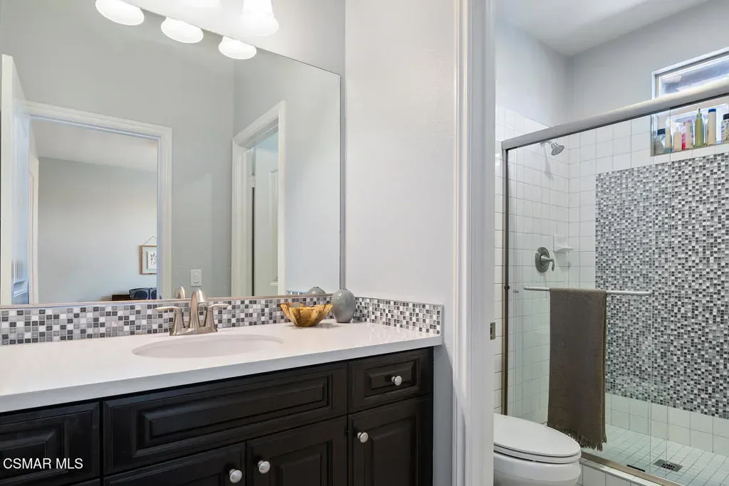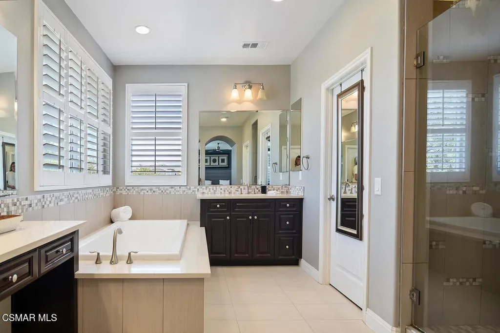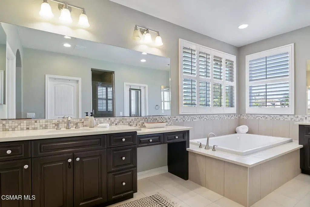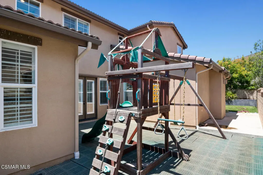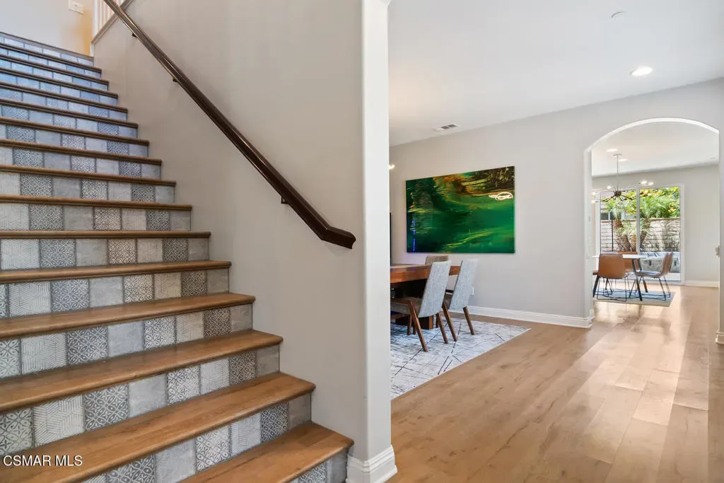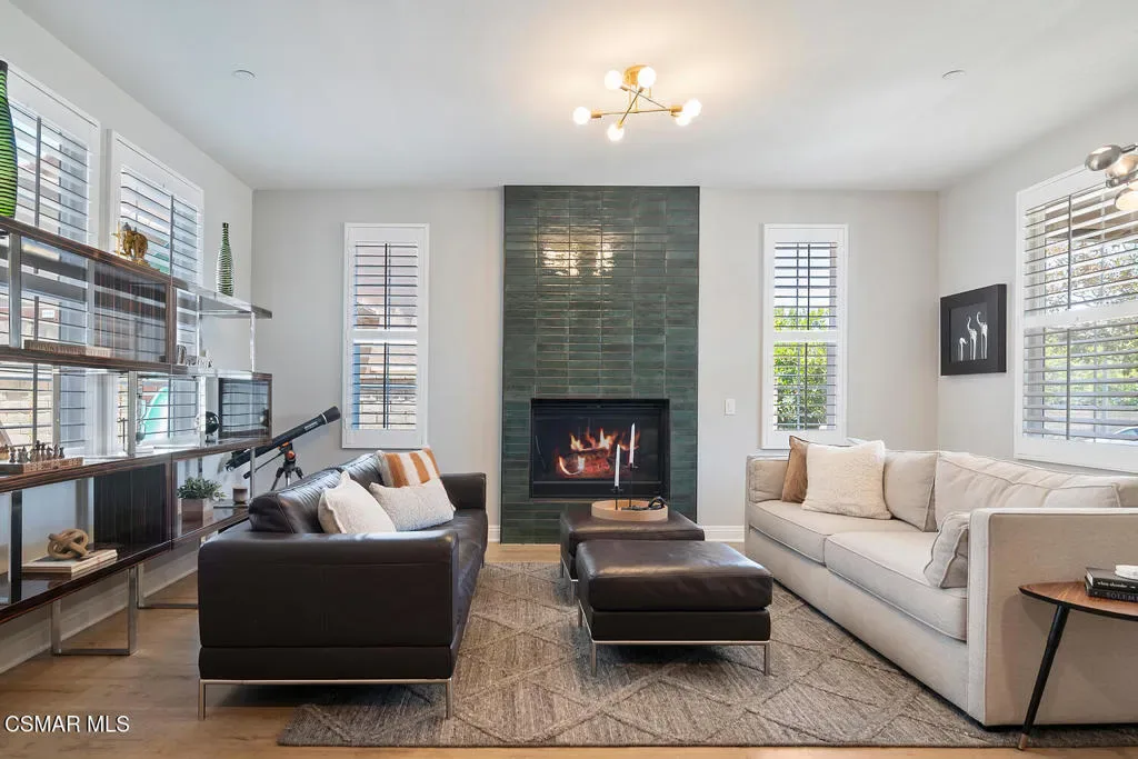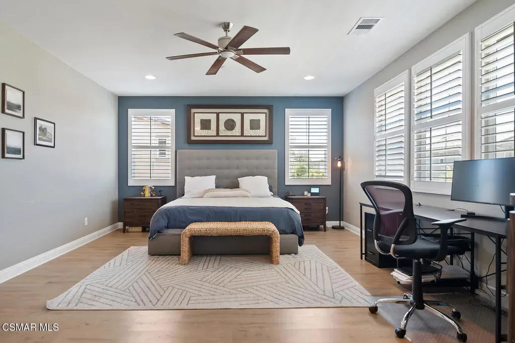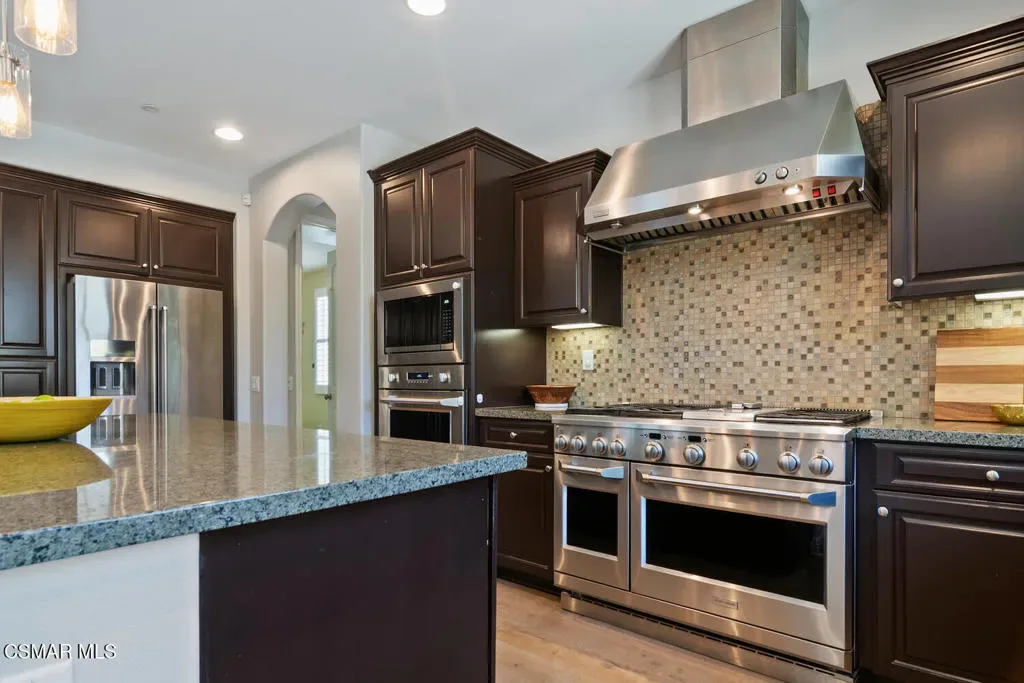 Discover this stunning 6-bedroom, 4-bath home in Camarillo’s sought-after Village at the Park! The open layout centers around a chef’s dream kitchen equipped with a Monogram 6-burner range and griddle, triple ovens, Bosch dishwasher, decorative backsplash, granite countertops, an oversized island perfect for gatherings, and abundant cabinetry. Enjoy formal living and dining rooms, plus two downstairs bedrooms ideal for guests and/or a home office. Upstairs offers a spacious loft, laundry room, 3 additional bedrooms, one of them with an en-suite, and a luxurious primary suite with dual walk-in closets and an upgraded bath. Stylish high-quality laminate flooring flows throughout. Enjoy a lush backyard with above-ground spa, large side yard, and charming courtyard complete with kid’s play set. Community perks include two sparkling pools, clubhouse, modern gym, multiple playgrounds as well as retail shops and dining. Close to Rancho Rosal Elementary School, Channel Islands YMCA, and Pleasant Valley Fields!