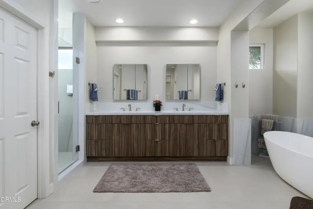 This home feels as good as it looks, thoughtfully reimagined with a refined, modern aesthetic and a comfortable, cohesive sense of ease.Natural light fills a beautifully connected main level designed for both everyday living and entertaining. The living and dining areas sit side by side, while the kitchen and family room offer a more relaxed setting just beyond. Sleek, modern finishes bring a clean, contemporary edge, continuing into the family room where the fireplace and custom media wall create a striking, seamless focal point. It’s a space that invites you to settle in. A sliding glass door, added in recent years, enhances the connection to the outdoors and brings in even more light.Upstairs, the primary suite is generously sized and serves as a true retreat, anchored by a remodeled ensuite bath with designer finishes, a spacious walk-in shower, separate soaking tub, private water closet, and two walk-in closets. An additional ensuite bedroom provides comfort and privacy, while a third bedroom is served by a well-appointed hall bath. The loft offers flexible bonus space–ideal as a media room, gym, or playroom–and can be converted into a fifth bedroom if desired. Newer carpet throughout the upper level adds a fresh, move-in-ready feel.Downstairs, a fourth bedroom is ideal for guests, a home office, or multi-generational living. The adjacent powder room offers space for a future shower addition. A dedicated laundry room with additional storage and a two-car garage add to the home’s everyday functionality.The backyard is designed for enjoyment, featuring a built-in BBQ, custom tile details that carry into the surrounding planters, and a manicured lawn. In the evening, the firepit and thoughtfully placed landscape lighting create a warm, inviting atmosphere.Pride of ownership is evident throughout, with thoughtful updates and careful maintenance. Village at the Park offers parks, resort-style pools, fitness centers, and a vibrant sense of community, all close to schools, shopping, and everyday conveniences.This is more than a home, it’s a place to settle in, spread out, and enjoy.