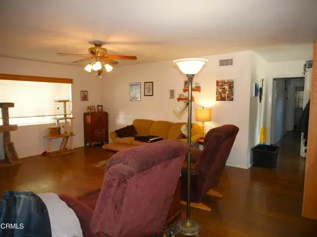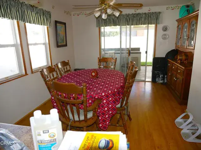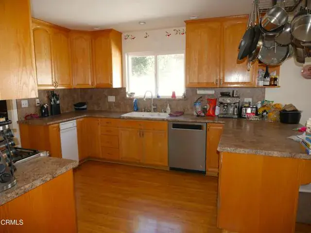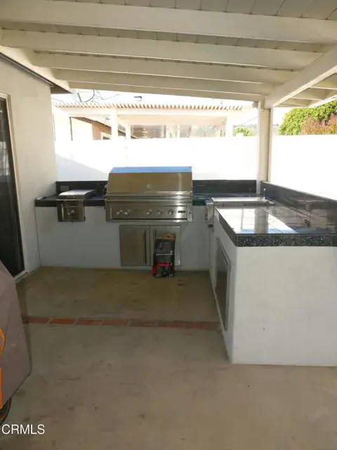 This beautifully enhanced Camarillo corner lot home offers a rare blend of style, space, and functionality in a prime central location. Step into an updated kitchen featuring custom oak cabinetry, updated counters, and hardwood flooring throughout the house except the office. Enjoy dual-pane windows, central A/C and heat, retextured ceilings, newer water heater, water softener, raised panel doors throughout, rolling shelves along the walls in the garage, and ethernet cat6 has been ran to all rooms. The spacious living area boasts a dramatic rock fireplace and oak flooring in the kitchen and dining room.Exterior upgrades include steel entry doors, and the main driveway fits two cars in front of the garage, while the extended driveway leading into the enclosed RV parking offers space for one or two additional vehicles. The expansive 52′ RV parking area accommodates virtually any rig. The private backyard is an entertainer’s dream with a covered patio, hot tub (no warranty), two storage sheds with shelves, gardener has been paid through December, and a custom-built BBQ island complete with burners, grill, and cooler.Located near parks, schools, the Boys & Girls Club, library, and shopping — this home checks every box. Don’t miss your chance to own this Camarillo gem!