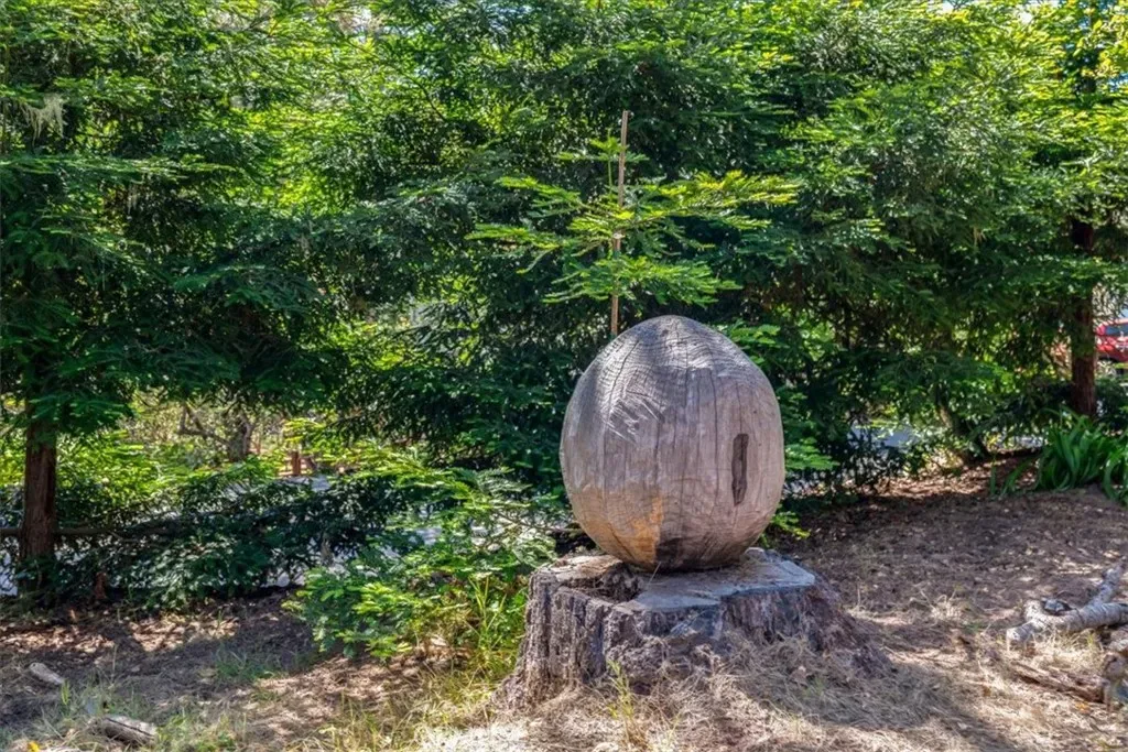 As you arrive, you’re welcomed by a park-like front yard that immediately sets the tone. Lush with mature oak trees and flowering shrubs, this serene space invites you to slow down, sit awhile, and enjoy the quiet beauty and peaceful surroundings.
