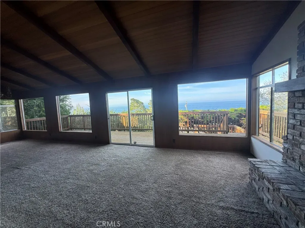 Dreaming of a rustic retreat where white-water ocean views meet the quiet beauty of forested hills? Residing on one of Cambria’s most sought-after streets, this shingle-clad cottage feels like a cabin retreat with coastal beauty beyond every window! Inside, vaulted wood ceilings and a classic brick fireplace create a warm atmosphere, while wide picture windows frame sweeping vistas of sea and sky. A little care is needed to bring this gem to its full potential.