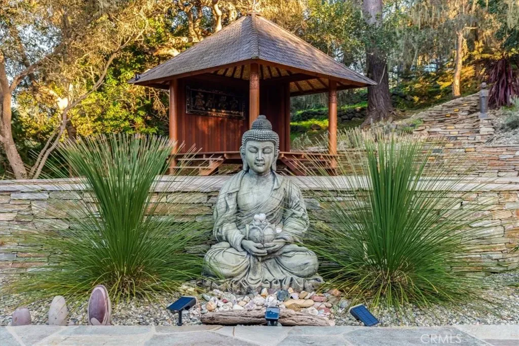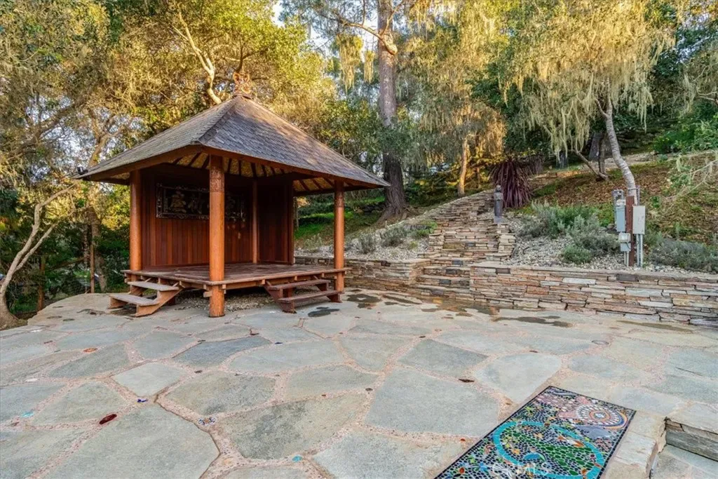 Adding a unique artistic element, the property features beautiful mosaics by local artist Leslie McKenna. One mosaic depicts the seven chakras, two celebrate the wildlife and natural beauty of the land, and another portrays an ancient Native American symbol of a person standing before a labyrinth, representing a journey with many possible paths. With multiple trails, room for expansion, and numerous peaceful sitting areas, the property is designed for exceptional outdoor living and entertaining while embracing the surrounding natural landscape.