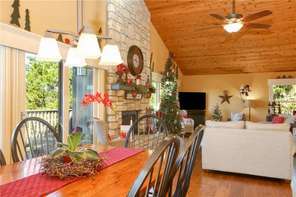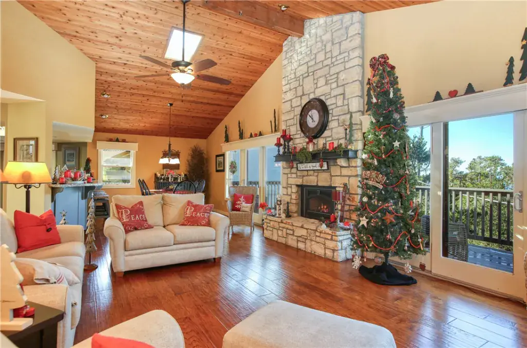 Enter this meticulously maintained and updated home at the top of Park Hill via the spacious front porch, and take in the tasteful finishes and white water views! Vaulted beam ceilings and Adelaide stone fireplace complement the window wall with ocean views that stretch to the San Simeon Point and beyond. Wood floors, stone countertops and updated cabinets blend with great wall colors, creating a very relaxing home. Decks off of the living room and kitchen provide sitting areas for whale watching and BBQing. The two-car garage, with plenty of built-ins, is on the same level as the kitchen/living/dining room, along with a 1/4 bathroom. Downstairs, the main bedroom with ocean views available from bed and sitting areas, even the vanity.