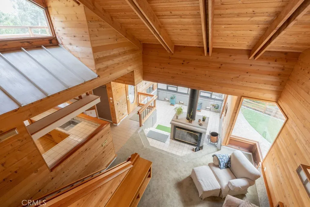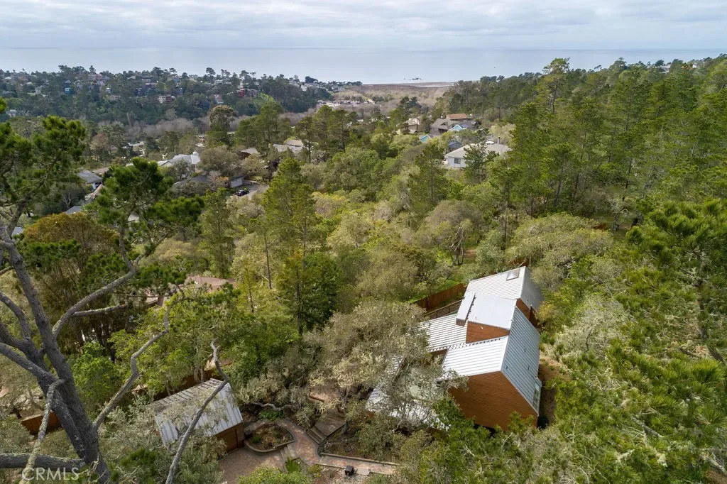 1021 Hillcrest is an architectural gem, perfectly designed for the 1+ acre site in sunny and sought after Pine Knolls, the original premier neighborhood in the seaside village of Cambria. This home features a passive solar design that incorporates Big Sur-esque exposed aggregate walls that serve as thermal mass complimenting the Douglas Fir post/beam structure. While the spaces are multi-leveled, only a few stairs separate each. Ceilings are vaulted and beamed, with skylights and windows for abundant light while feeling the outdoors mingle with your inside living. Decks provide plenty of outside living space where you can take in the awesome setting, which is not only adjacent to the approx 1,600 acre Covell Ranch, but also provides ocean views and powerful sunsets to the west! James Maul, noted Central Coast architect, designed so many features into this property, with paths and patios connecting the main home to the guest house, and the detached garage just below. The buildings are set back from the street, up the beautifully multicolored paver driveway, with extra parking areas, including RV area with hookups. The main house is loft-style one bedroom with great openness throughout, and the guest house has 2 bedrooms and a bath, also designed Maul-style with plenty of artful beam work. The two parcels total over one acre of privacy and unlimited options for your legacy property. A few minutes from the village, and a short drive to Big Sur, Paso Robles wine country, many beaches to meet your needs, and our big city of San Luis Obispo!! Call your realtor today for a private showing.