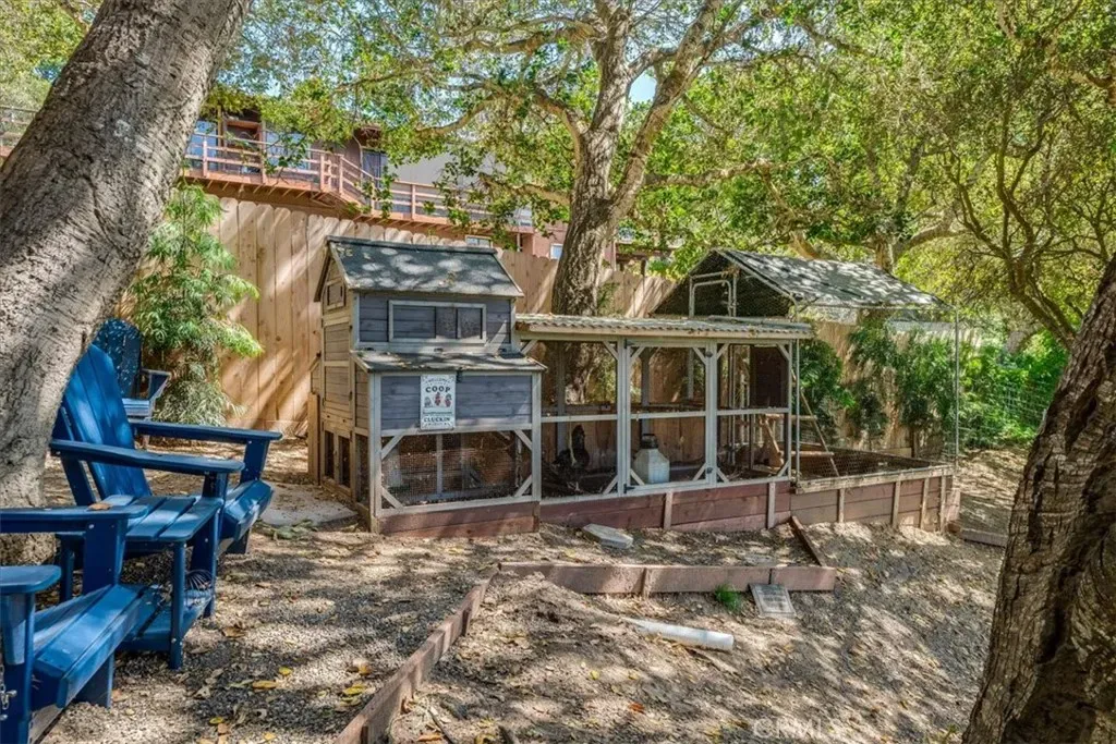 The lot has a shed with a deck and a chicken coop, both structures have many possibilities.