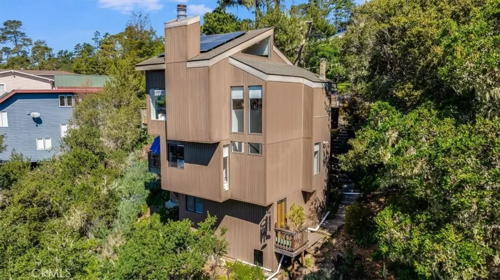 Escape the city and retreat to this custom ocean-view treehouse in Cambria Pines by the Sea.