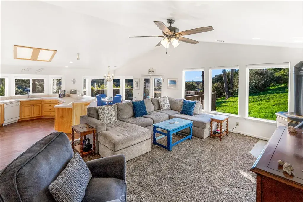 Just a short stroll from Cambria’s beloved West Village, this inviting 4 bedroom, 2.5 bath home offers the perfect blend of coastal charm, comfort, and walkable convenience. Set slightly above town, the home is elevated just enough to capture beautiful views of Cambria, the surrounding hills, and even a distant glimpse of the ocean. As you step inside, you’re welcomed by an abundance of windows that fill the main living areas with natural light, creating a cheerful and warm atmosphere. Recent upgrades, including luxury vinyl flooring through much of the home, add a modern touch while maintaining a relaxed coastal feel. The kitchen is designed for both everyday living and gathering, offering ample cabinetry and counter space, a breakfast bar, and an easy flow into the dining and family room, where a gas fireplace anchors the space and invites cozy evenings. Near the entry, a separate living room or den with a barn door provides flexibility for quiet moments, guests, or a home office. Both the guest bath and primary bath have been beautifully remodeled, and a versatile bonus room on the lower level offers endless possibilities as a fifth bedroom, media room, or workspace. The primary suite feels like a private retreat, complete with dual vanities, a spacious shower, a charming claw-foot tub, and access to its own deck—perfect for morning coffee. Outdoor living continues with a large view deck off the main living area, ideal for entertaining or simply taking in the evening sunsets, as well as a separate, private patio in a fenced yard with mature trees and a garden area. A finished two-car garage and laundry hookups on both levels add convenience, making this home as functional as it is welcoming—a true Cambria gem ready to be enjoyed.