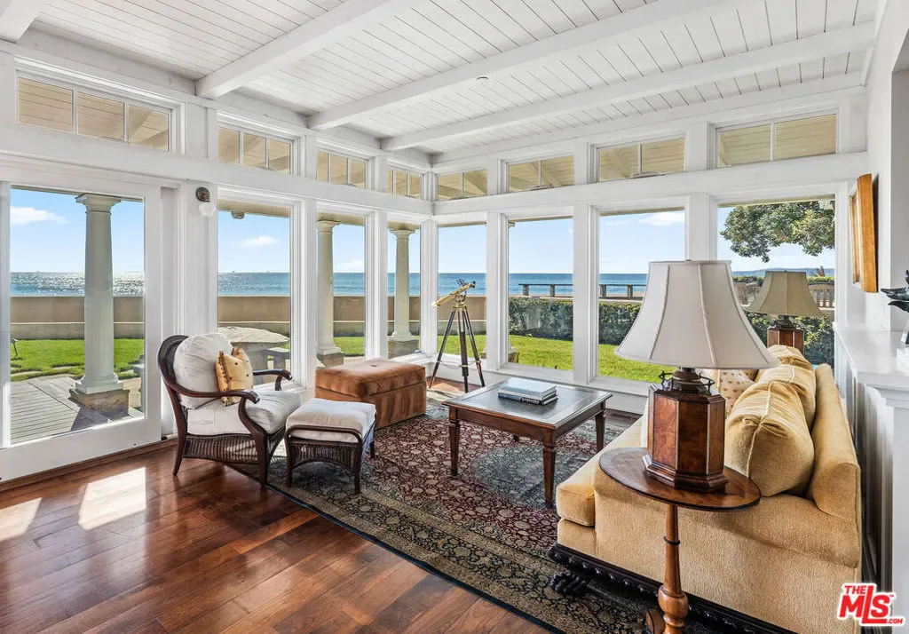 2025 Rates – The high season and holiday nightly rate is $4,000/night and the low season nightly rate is $3,000/night. *Please note the 4 night booking minimum. 6 to 12 month long term lease is $60,000/month. The month to month rate is $80,000/month. The video is not up to date with current furniture. please reach out with any questions. Located on prestigious Padaro Lane, this gated expansive beachfront estate combines formality with comfort, and is perfectly angled for privacy and dramatic sunsets.With ocean views up and down the coastline, lawns in the front and rear of the estate, high quality construction with exquisite details, this oceanfront estate has everything you could wish for.One of the larger parcels on Padaro, with a feeling of breadth and bright generous spaces. Nearly every room in the home takes advantage of ocean, coastline, and island views.Sit by the fire pit or in the hot tub, watch the dolphins, take in the stars and the ocean breeze, and let the sound of the ocean lull you to sleep. This is the ultimate in luxury and a lifestyle some can only dream about. Details include a gourmet kitchen with Viking appliances and marble center island, butler’s pantry, ice cream bar off the interior lanai, walnut and mahogany flooring, Baccarat lights, beautiful columns, incredible paneling and ceiling detail, and three suites with the ability to function as the primary bedroom.The guest house and the garage are not included in this rental. A single long term tenant lives in the guest house.