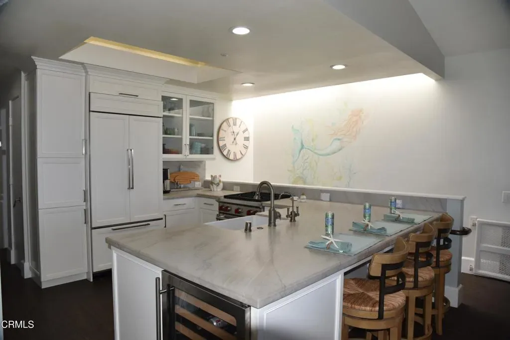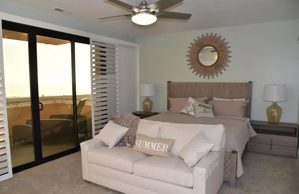 Oceanfront Condo in Carpinteria w/ ocean, island, & coastline views – Snowbird’s paradise found at the ”World’s Safest Beach”. Minimum 30 day rental req’d per HOA. 3 Bedrooms with 3 baths, 2 ensuite. Sleeps 6-8 (2 kings, 1 queen, & pull out sofa bed w/ air mattress). Fully furnished 2 story condo, with fully equipped kitchen. Short stroll to casual & fine dining, as well as specialty boutique shopping in quaint California beach town. Catch the train (15 mins) to Santa Barbara for dinner or Sunday art walk and Child’s zoo. Under an hour to the Santa Ynez Valley wineries or the Chumash Casino. 4K Smart TVs, w/ cable & wifi. Enjoy beautiful long walks along the pristine shore to the bird refuge or visit the seal preserve & rookery. Living the California Dream does not get any better than this beachfront retreat! Minimum 30 day rental req’d per HOA. Call for Winter/Spring/Summer rates & availability. Available for 30 day rental until June 16th,, 2026. . Good Credit a Must!