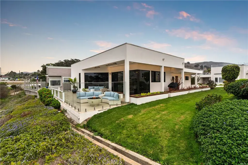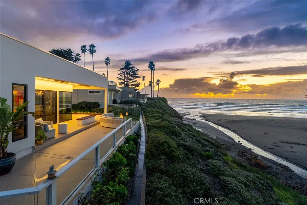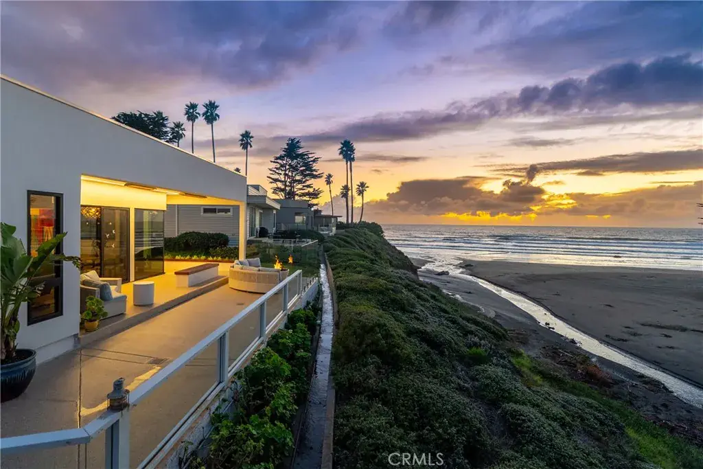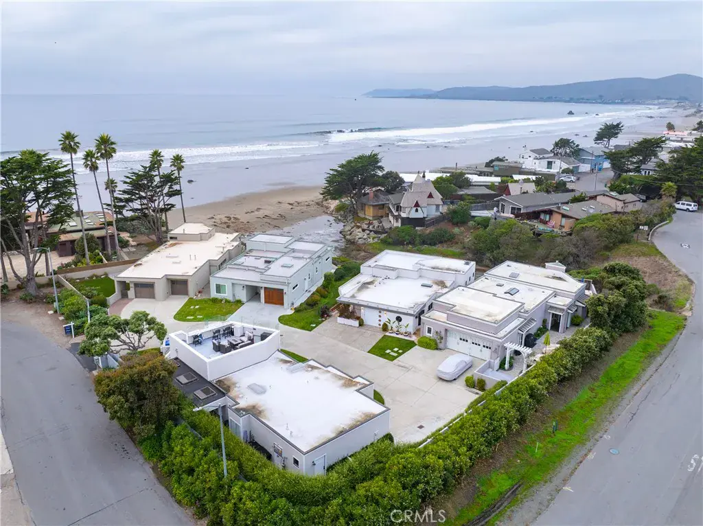 One-of-a-kind oceanfront home on Studio Drive, angled beside Cayucos Creek, with unobstructed panoramic ocean views in a private gated community. This three-bedroom, two-bath home offers modern coastal elegance, blending clean European lines with warm nautical influences.