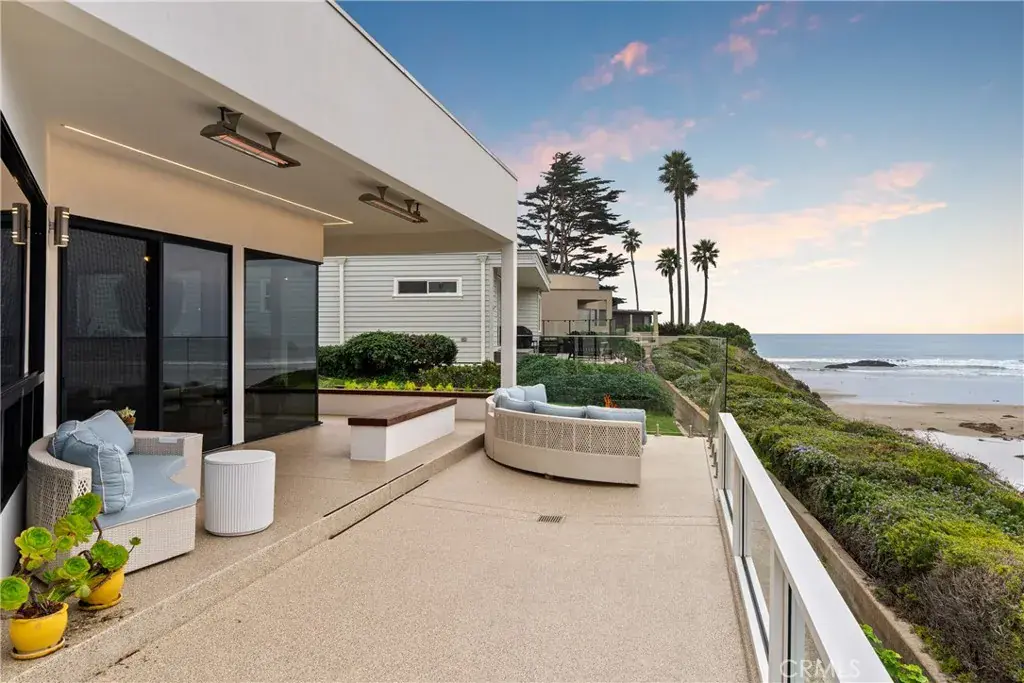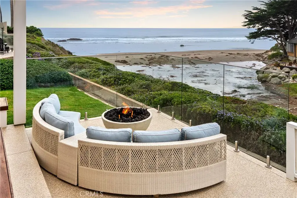 This home embodies beachside living with an expansive ocean-view patio complete with glass wind screens, outdoor ceiling heaters, and a natural gas firepit—perfect for sunset watching or outdoor dining. Don’t miss your chance to experience refined coastal living on one of the most desirable stretches of sand in the county