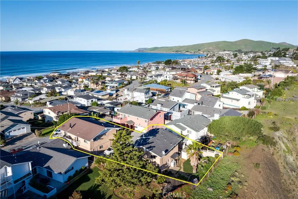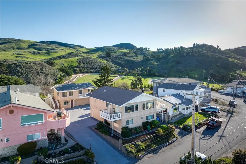 Rare Cayucos opportunity featuring two separate units, abundant parking, and an active vacation rental license, all just a short walk to town and the beach. The street-side 3BD/2BA main home offers sweeping ocean views from the upper-level great room with open-beamed ceilings and three decks—ideal for coastal living or entertaining. Set beyond a generous parking area is a detached 2BD unit with a three-room bonus space for flexible use, plus a large backyard with peaceful coastal hill views. Located on a quiet cul-de-sac with nearby coastal access stairs at 16th and 19th Streets, this property offers multiple use options and excellent income potential.