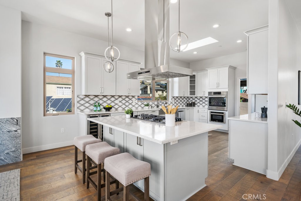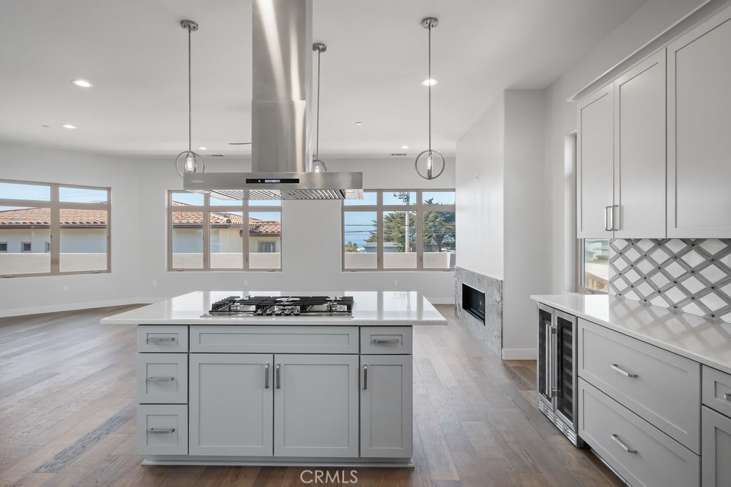 Upstairs, the open-concept living area is a showstopper. A gas fireplace with a sleek marble surround takes center stage, while designer touches elevate the space at every turn. And the kitchen? Pure perfection. Think quartz countertops, shaker-style cabinetry, top-tier stainless steel appliances, a wine fridge, and a central island with a built-in range and modern hood—because every great gathering starts in the kitchen.