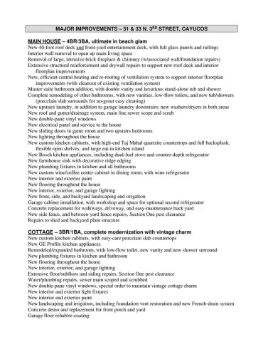 Courtesy of Real Estate eBroker Inc.. Disclaimer: All data relating to real estate for sale on this page comes from the Broker Reciprocity (BR) of the California Regional Multiple Listing Service. Detailed information about real estate listings held by brokerage firms other than Outland and Associates / JoAnn Outland include the name of the listing broker. Neither the listing company nor Outland and Associates / JoAnn Outland shall be responsible for any typographical errors, misinformation, misprints and shall be held totally harmless. The Broker providing this data believes it to be correct, but advises interested parties to confirm any item before relying on it in a purchase decision. Copyright 2026. California Regional Multiple Listing Service. All rights reserved. Located in one of Cayucos’ most walkable beachside neighborhoods, this dual residence property offers rare flexibility with finished quality throughout. The front home at 31 North 3rd Street, offering four bedrooms and three baths, was taken approximately 80 percent down to the studs and rebuilt with new plumbing, electrical, heating, and systems. It features a new roof, new 40 foot glass enclosed rooftop deck, new front deck, new windows, new flooring, a redesigned kitchen with Taj Mahal quartzite countertops, Bosch appliance suite with dual fuel range, custom wine and coffee bar with wine refrigerator, four new bathrooms, and two laundry centers with included washers and dryers. Ocean views with Morro Rock are enjoyed from the kitchen island, living and game room, and outdoor decks. The second residence at 33 North 3rd Street offers three bedrooms and one bath and has been fully renovated with a new kitchen featuring matte porcelain slab countertops, Master Craft cabinetry, GE Profile appliances, a new bathroom, new windows, new flooring, updated plumbing fixtures and lighting, an attached garage with coated floor, private outdoor space, and a dedicated laundry center with washer and dryer included. Both homes benefit from new landscaping, irrigation, concrete hardscape, fencing, drainage improvements, sewer line scope and scrub, and Section One clearance. Zoned residential with potential short term rental eligibility for the guest home subject to buyer verification with San Luis Obispo County, this is a rare opportunity to secure two fully modernized detached homes near the ocean in Cayucos with long term lifestyle and income flexibility.