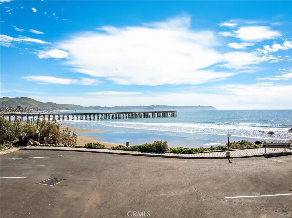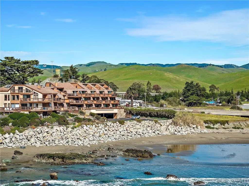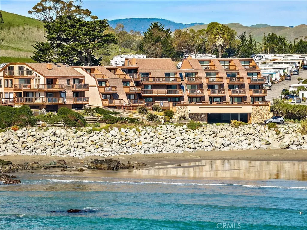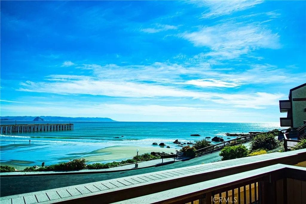 Stellar Site for this short-term licensed condo in a renowned oceanfront complex. Beach access and sweeping views of Estero Bay, Morro Rock, Pier and Cayucos put this unit on repeat for vacation time or a desirable income producing rental. The efficient plan has no hallways and easier access than levels above. Access from the wide deck is via door, or siding door and the great room looks beyond the expansive deck to the changing ocean scenes. Storage just inside is ideal for deck and beach gear. The kitchen has ample counter space, a special pantry cabinet and its own ocean views. The bathroom functions ensuite for the bedroom via a sliding door. On-site laundry facilities and covered parking and gated entrance add to the convenience. Unit can be purchased fully furnished. Don’t miss this array of features and benefits!