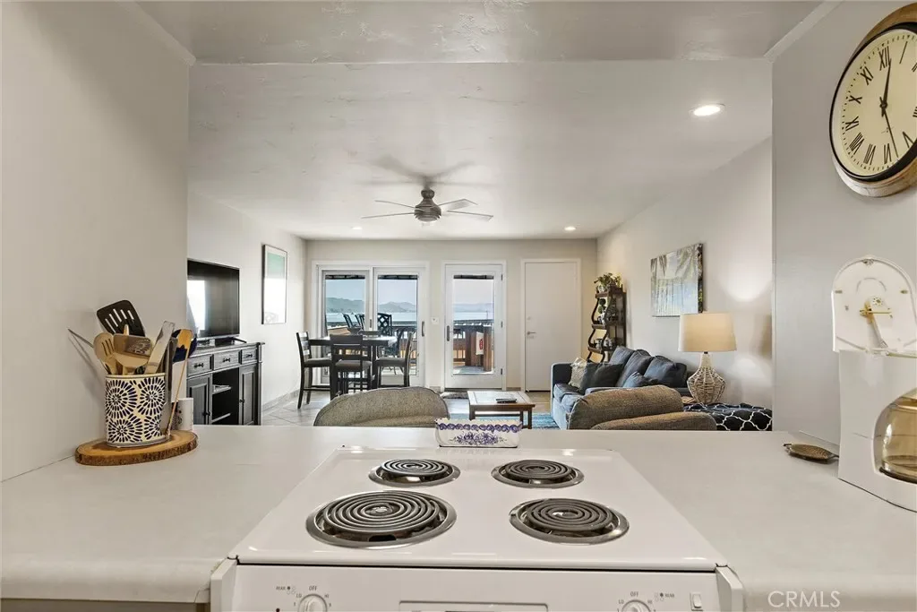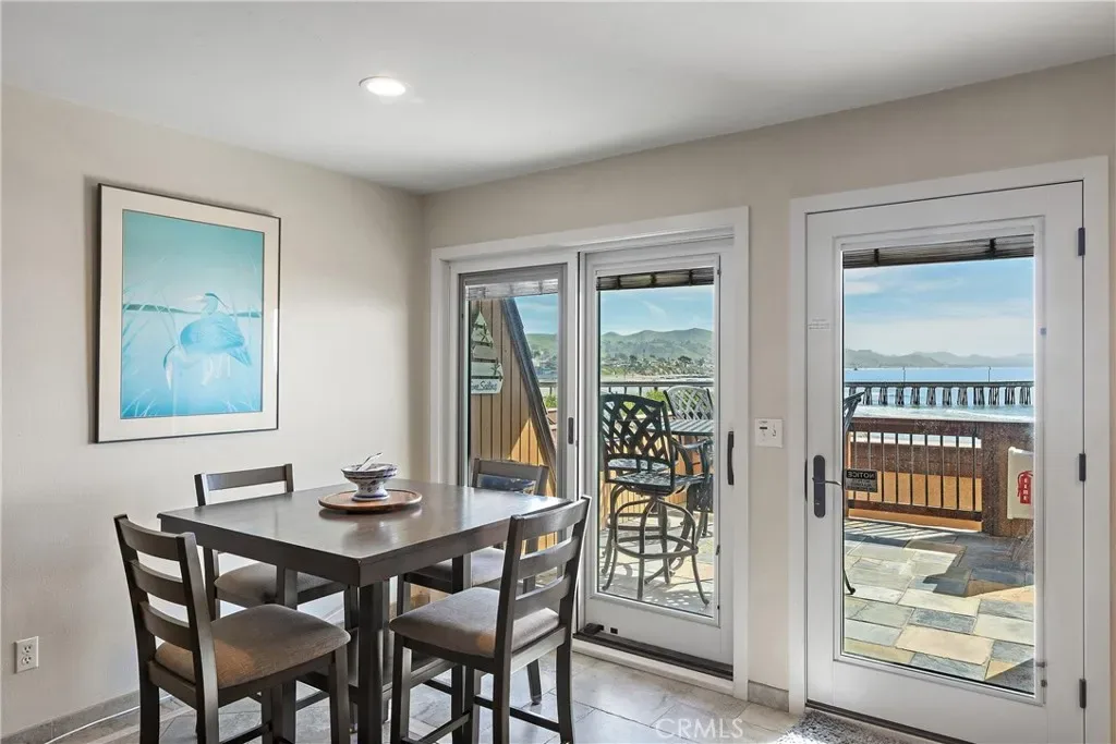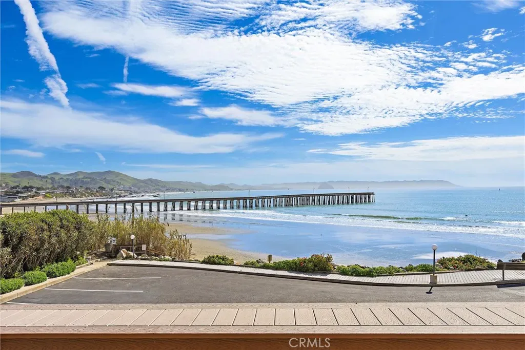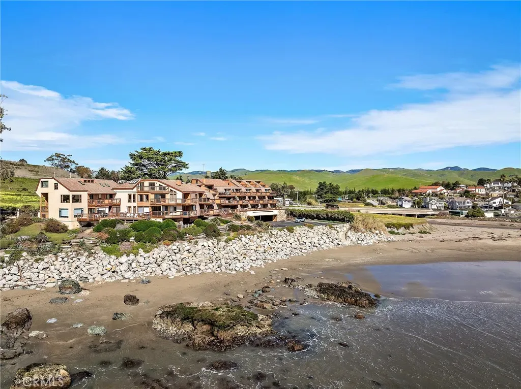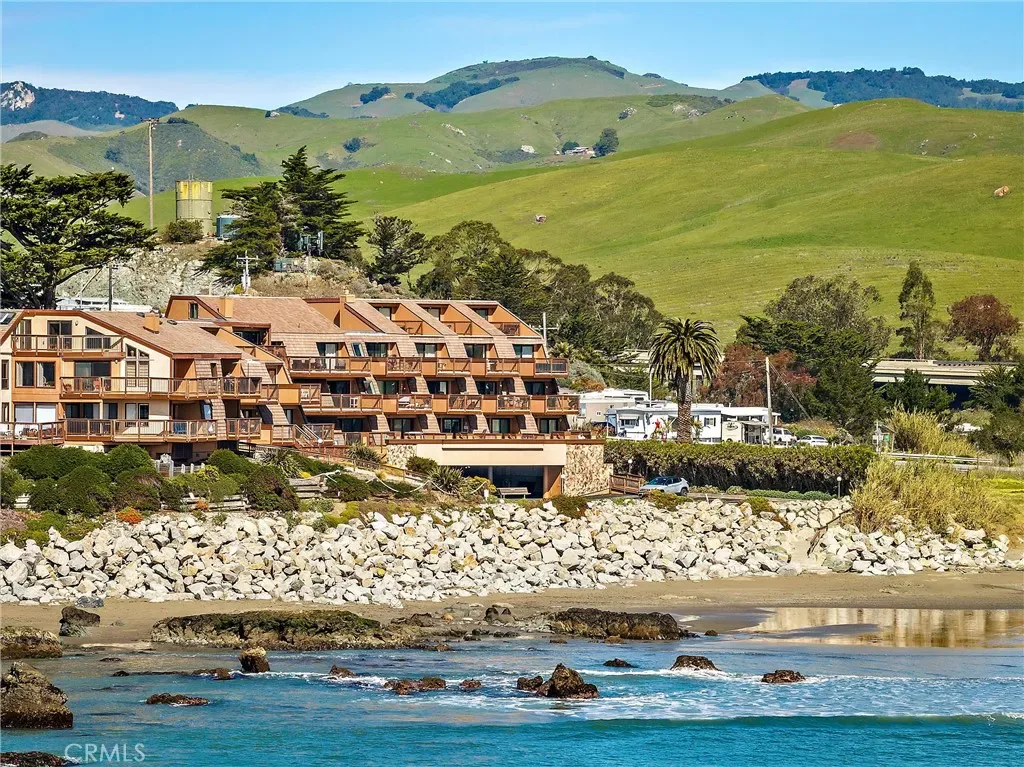 Stellar Site for this short-term licensed condo in a renowned oceanfront complex. Beach access and sweeping views of Estero Bay, Morro Rock, Pier and Cayucos put this unit on repeat for vacation time or a desirable income producing rental. The efficient plan has no hallways and easier access than levels above. Access from the wide deck is via door, or siding door and the great room looks beyond the expansive deck to the changing ocean scenes. Storage just inside is ideal for deck and beach gear. The kitchen has ample counter space, a special pantry cabinet and its own ocean views. The bathroom functions ensuite for the bedroom via a sliding door. On-site laundry facilities and covered parking and gated entrance add to the convenience. Unit can be purchased fully furnished. Don’t miss this array of features and benefits!