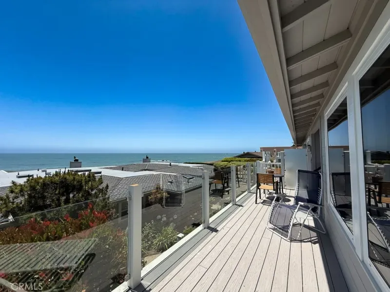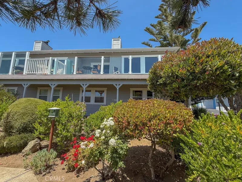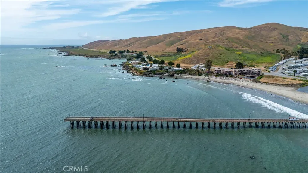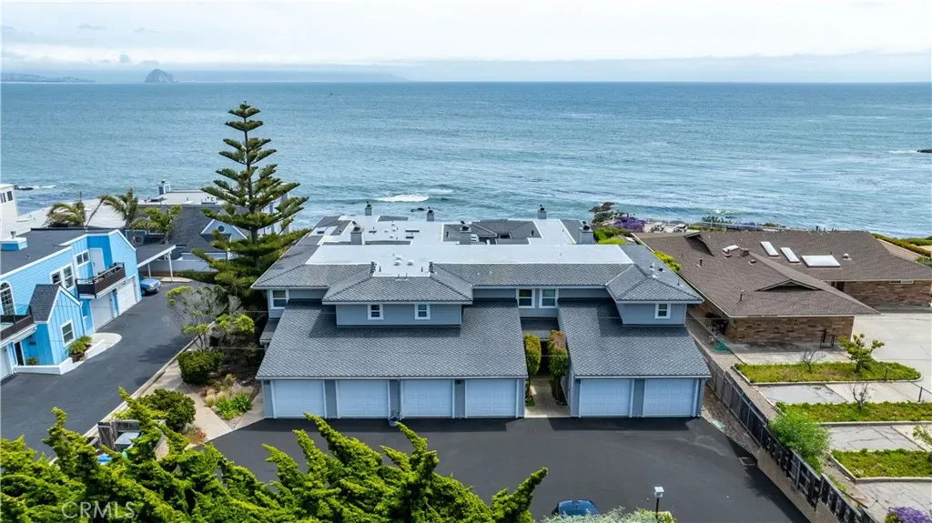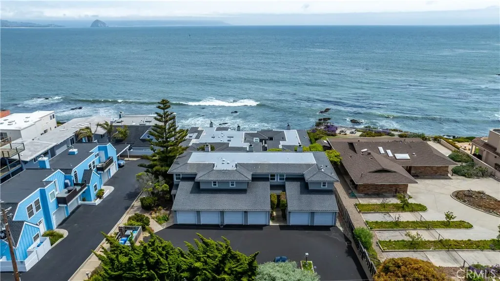 Enjoy some of the best views along Estero Bay, from the Cayucos Pier to Morro Rock, Montana de Oro, and beyond. This updated coastal condo is move-in ready, (ASK ABOUT KITCHEN PLANS) — nestled along the pristine coastline north of downtown Cayucos in a six-unit complex. Watch the amazing SLO County sunsets, migrating whales, and ocean life—all right from the comforts of home. This two-story end unit maximizes window light without adjoining neighbors to the south and offers a private entrance with established landscaping. Entering the home, an open staircase leads up to southwest-facing, wall-to-wall windows in the open living and dining area, with the upper floor perched up above the neighboring condo rooflines. The large private deck adds outdoor living space with new glass panels to highlight the amazing coastal views. Upstairs you’ll find a stately gas fireplace, cozy kitchen with views of Morro Rock, bar seating, a large pantry/linen closet, and full bathroom. There are two large bedrooms on the ground floor with ample closets, lots of additional hallway storage, full bathroom with modern upgrades, and indoor access to the attached garage, with room for a small vehicle, EV charger, and backup generator plus an additional assigned parking space in the private community lot. Call Cayucos home–close to many charming and relaxing coastal attractions, the Cayucos Pier, newly renovated Cayucos Landing Vets Hall, shops, restaurants, and the trailhead for Estero Bluffs State Park.