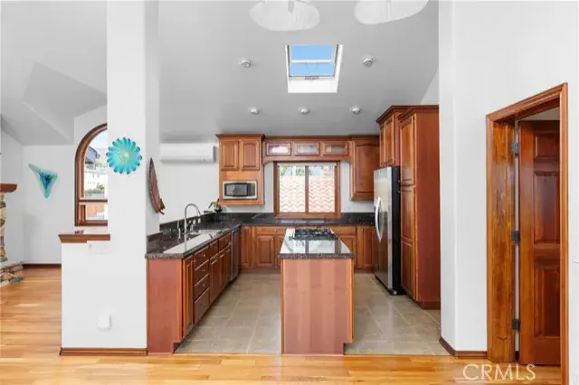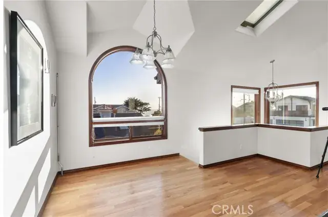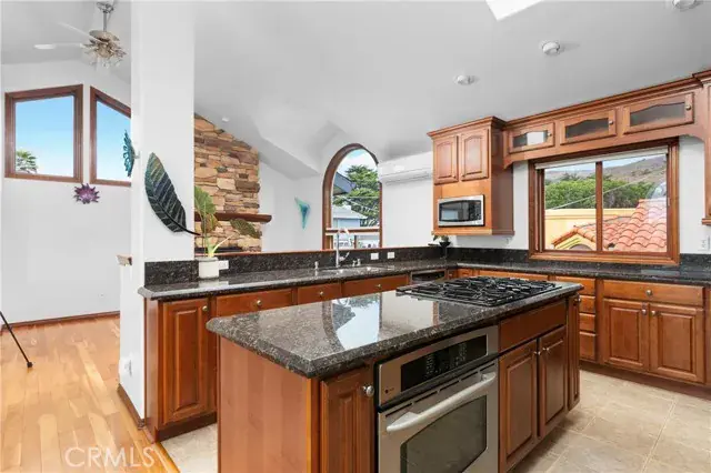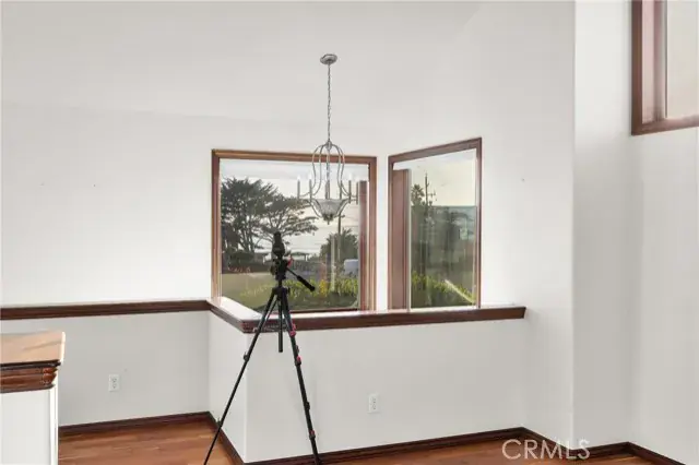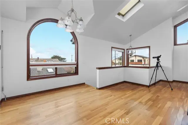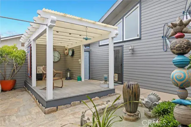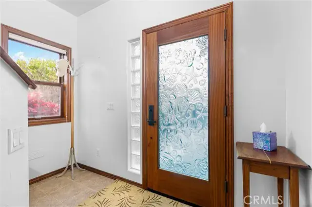 Prime location & quality design allow 60 5th Street to enjoy ever changing views of the nearby Pacific Ocean. A translucent glass entry door opens to a spacious foyer. Dark wood trim flows throughout the distinctive plan. An impressive staircase with display niche curves upward. First level includes a huge bedroom and a well appointed bath. W/D space is beneath the stairs. Upper level includes a great room with vaulted ceilings and lots of glass. Living and dining areas are compact. The kitchen is spacious with lots of cabinetry and a full array of quality appliances. Primary suite has lots of light, more views & a separate jetted tub and shower. Yard areas are fully landscaped and accessory buildings in the backyard offering many options. Coastal Access is near at the 5th Street bluff.