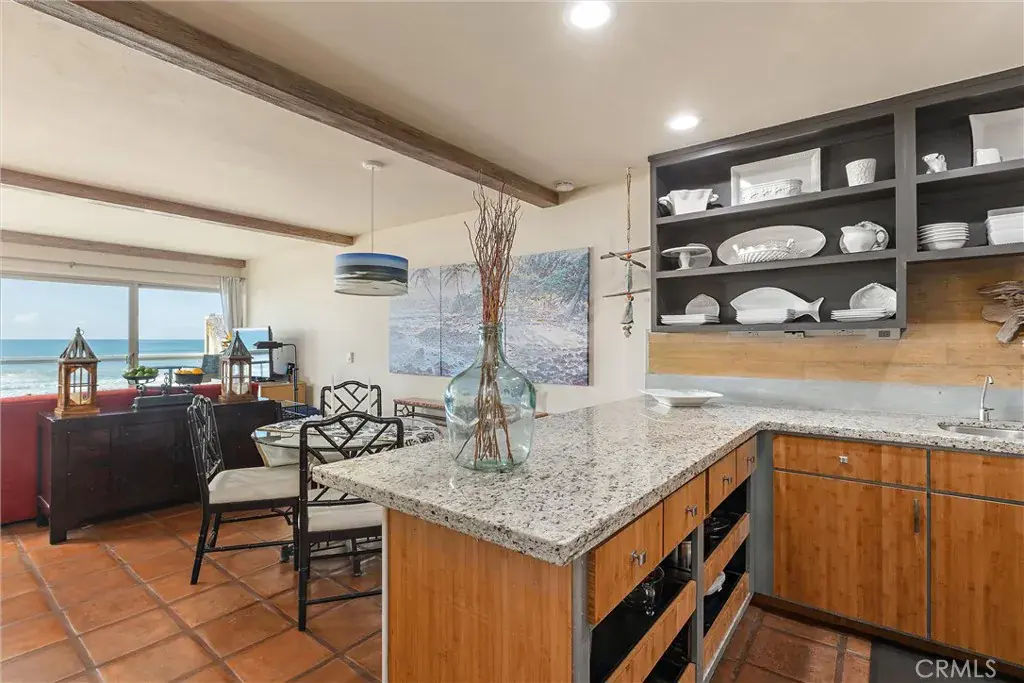 Breathtaking panoramic whitewater views of the entire coastline from Morro Rock to the Cayucos pier from this end unit condo. Watch the surfers and shore birds or take a walk in the sand searching for sea glass or other treasures. Two bedrooms, two bathrooms, heated outdoor shower, tile floors, ceiling fans, indoor laundry, wet bar with wine refrigerator add to beach living. Upstairs you will find an open floorplan with deck and an updated kitchen. There is a current vacation rental license which adds to the value of this property. Located in downtown Cayucos and just steps away from shopping and restaurants. Furniture and furnishings are available, and it is ready and waiting for you to enjoy for the upcoming summer.