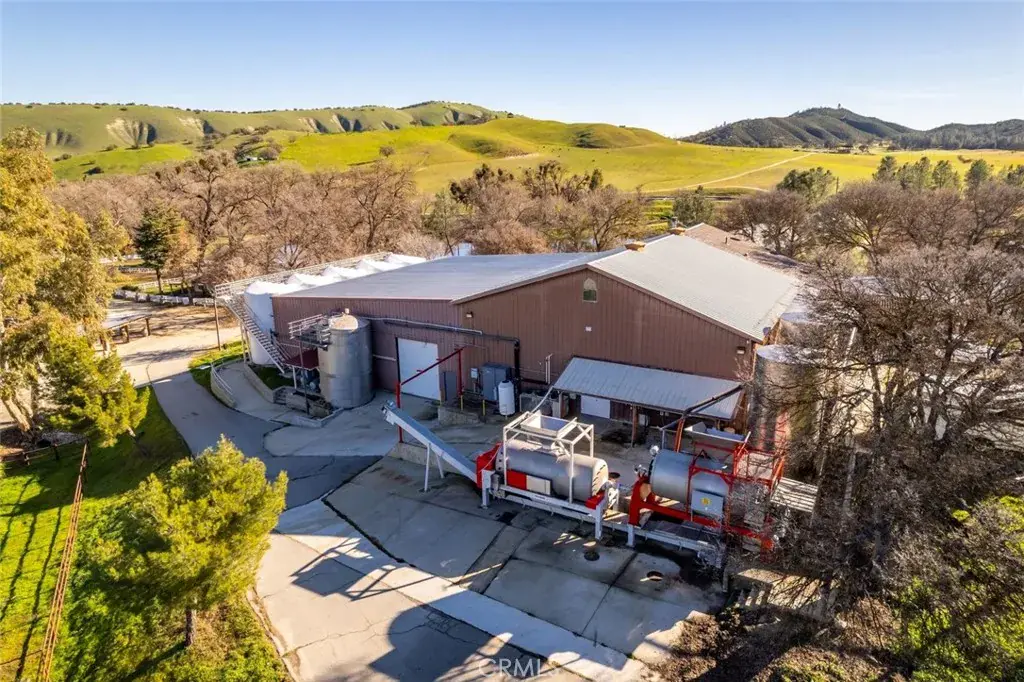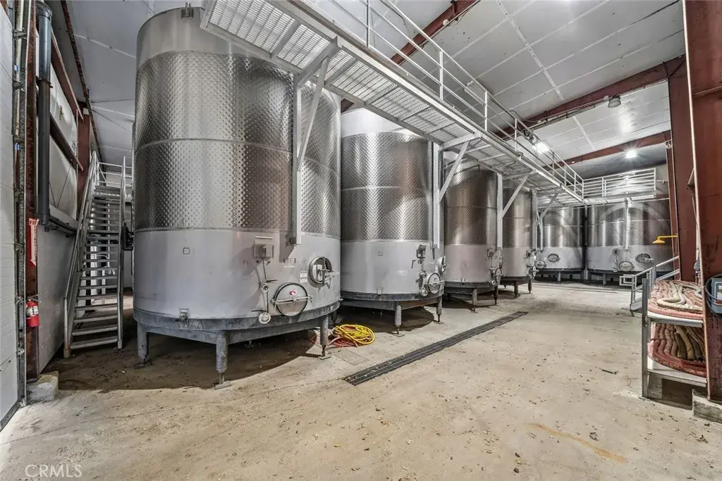 The estate features 22± acres of producing vineyards planted to Syrah, Cabernet Sauvignon, Zinfandel, and Pinot Noir, supported by exceptional production infrastructure including a 9,700± SF winery building with 1,600± SF apartment and 500± SF office, a 10,000± SF barrel room with 3,750± SF expansion, barrel stacking up to five high, and multiple warehouse facilities for case goods and pallet storage. A robust water system includes two productive wells (one producing approximately 150 GPM), six 6,000-gallon storage tanks, and four 2,500-gallon holding tanks, ensuring reliable operations for vineyard, livestock, and hospitality uses.