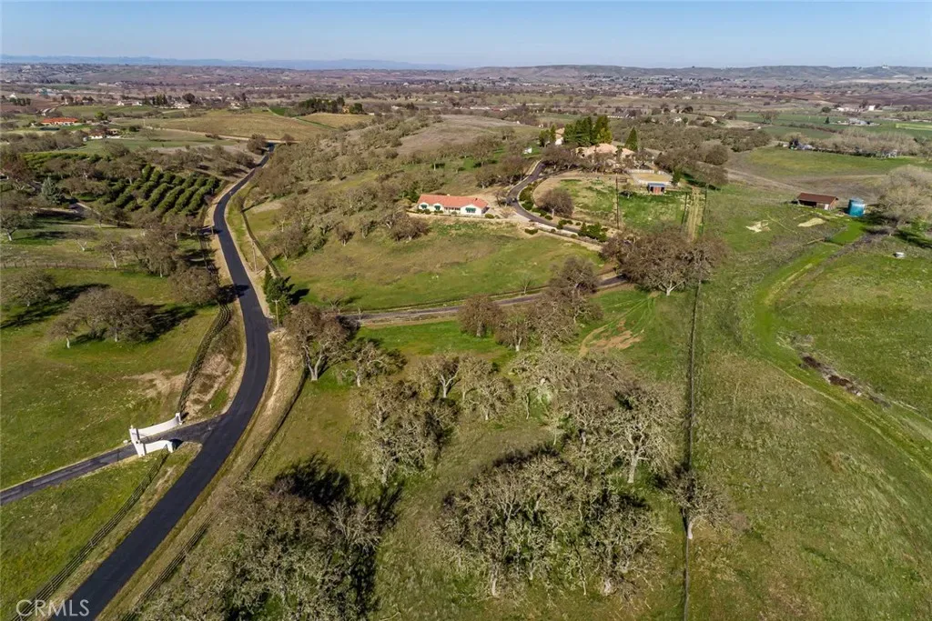Set within a private gated community in Creston, just minutes from The Loading Chute and Long Branch Saloon, this exceptional 20± acre estate offers sweeping panoramic views of rolling hills, vineyards, and open countryside. Designed with both lifestyle and functionality in mind, the property presents a rare opportunity to own a fully improved multi-residence compound ideal for multi-generational living, guest accommodations, or a private retreat. At the heart of the property is a beautifully refreshed main residence, complemented by a well-appointed guest home and a fully renovated bunkhouse—creating a versatile three-structure compound that offers both privacy and flexibility. The main residence has been thoughtfully upgraded with new flooring, remodeled bathrooms, updated kitchen cabinetry with tile finishes, and a reimagined living space featuring a redesigned fireplace and refined architectural details. Expansive sliding glass doors open seamlessly to outdoor living areas, blending indoor comfort with the surrounding landscape. The guest house offers 3 bedrooms and 2 bathrooms with an open-concept design and expansive views, while the fully remodeled bunkhouse/studio includes its own kitchen, bath, and private patio—ideal for additional guests, workspace, or creative use. Outdoor living is equally compelling, with a pool and spa, resurfaced decking, and multiple gathering areas set among mature oaks and enhanced landscaping. Equestrian amenities include a 5-stall barn with loft, tack room, wash bay, fenced arena, and approximately 17 acres of cross-fenced pastures with water access throughout. Significant infrastructure upgrades—including a new septic system, well pump, booster pumps, updated electrical, and improved water distribution—provide long-term efficiency and ease of ownership. Located just a short drive to Paso Robles, this property captures the essence of Central Coast living with privacy, scale, and breathtaking sunsets in one of Creston’s most desirable settings.