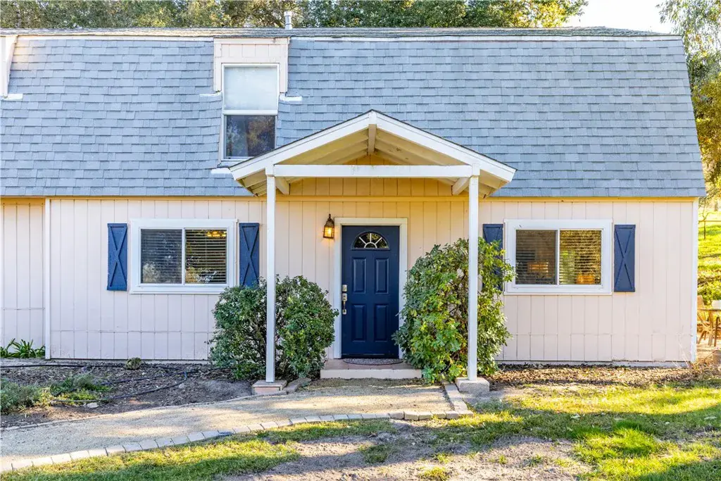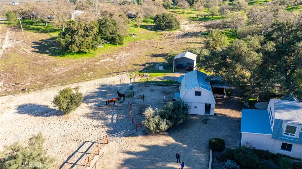 If a picture is worth a thousand words, this ranchette speaks volumes! This charming farm-style 3-bedroom, 3-bath home on 5.47 acres perfectly blends aesthetics and function, offering your own private retreat. The kitchen, with its beautiful tiled countertops, backsplash, and custom maple cabinets, is the heart of the home, ideal for serving delicious meals at the breakfast bar or in the dining area. Guests will appreciate the lovely tiled half bath, and the spacious living room opens through a sliding glass door to a delightful patio for outdoor living. Upstairs, the master bedroom suite is a true haven, with tile work that’s a masterpiece—matched by the equally impressive upstairs hall bath featuring an artist-designed arch above the tub/shower. The bedrooms are spacious and inviting, perfect for unwinding after a day’s activities on the ranch. Powered by an owner-owned solar array with Tesla batteries supplementing PG&E, the home also boasts a new roof on the attached 2-car garage and a newer roof on the main house. The barn features custom stables to shelter animals, a bathroom, electricity, a tack room, and a bonus area upstairs, plus a riding arena and a hay/feed/tractor shed. The property is graced with beautiful oak trees and landscaping and is truly priced to sell.