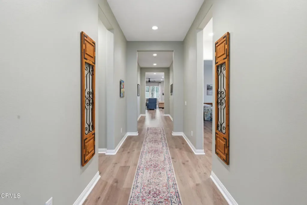Wonderful opportunity to own this beautiful single-story Orchard home in the highly desirable Heritage Grove community of Fillmore! Situated on a nearly 10,000 sq. ft. premium lot, this spacious 2663sqft residence offers 4 bedrooms and 3.5 bathrooms with a thoughtfully designed floor plan ideal for comfortable living, multigenerational needs, and effortless entertaining.Upon entry, you’ll find a generously sized bedroom with a full bath to the left–perfect for guests or extended family. To the right are two additional bedrooms with access to a full bathroom featuring dual vanities and a tub/shower combination. Each bedroom is equipped with its own ceiling fan for added comfort. The home showcases upgraded paint throughout, luxury vinyl plank flooring, and additional lighting that enhances its bright and inviting atmosphere. TVs are included.The open-concept kitchen is a true centerpiece, featuring a large island, massive walk-in pantry, upgraded appliance package, full designer backsplash, abundant cabinetry, and a reverse osmosis water filtration system. It flows seamlessly into the main living areas, making it perfect for gatherings both large and small.The spacious primary suite offers a massive walk-in closet and a beautifully appointed bathroom with custom tile flooring that complements the backsplash. A convenient indoor laundry room with dual access adds everyday functionality.Step outside to enjoy the covered rear patio–complete with a Gas BBQ included and ready for entertaining. The expansive backyard boasts approximately $50,000 in upgrades, allowing you to enjoy it from day one. A side walkway provides easy access around the home.Additional highlights include a 3-car tandem garage offering ample space for vehicles, storage, a home gym, or potential ADU conversion (buyer to verify with appropriate authorities). The wide right side yard may be perfect to accommodate RV access.This newer home combines modern upgrades, premium lot size, and exceptional functionality–all in one in Fillmore’s most sought-after communities.Don’t miss this incredible opportunity–schedule your showing today before it’s gone!