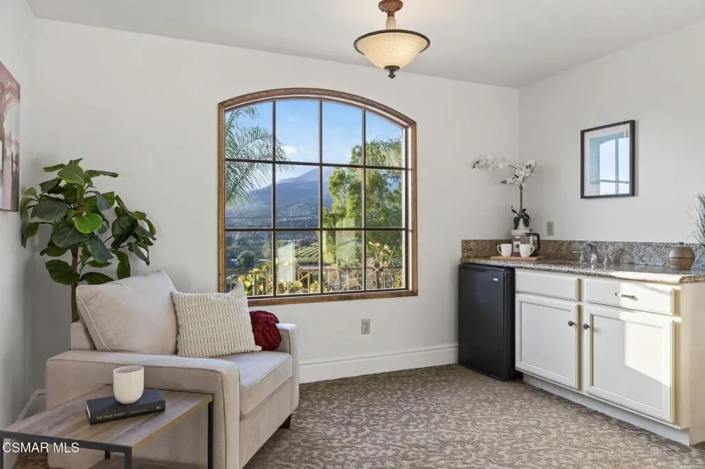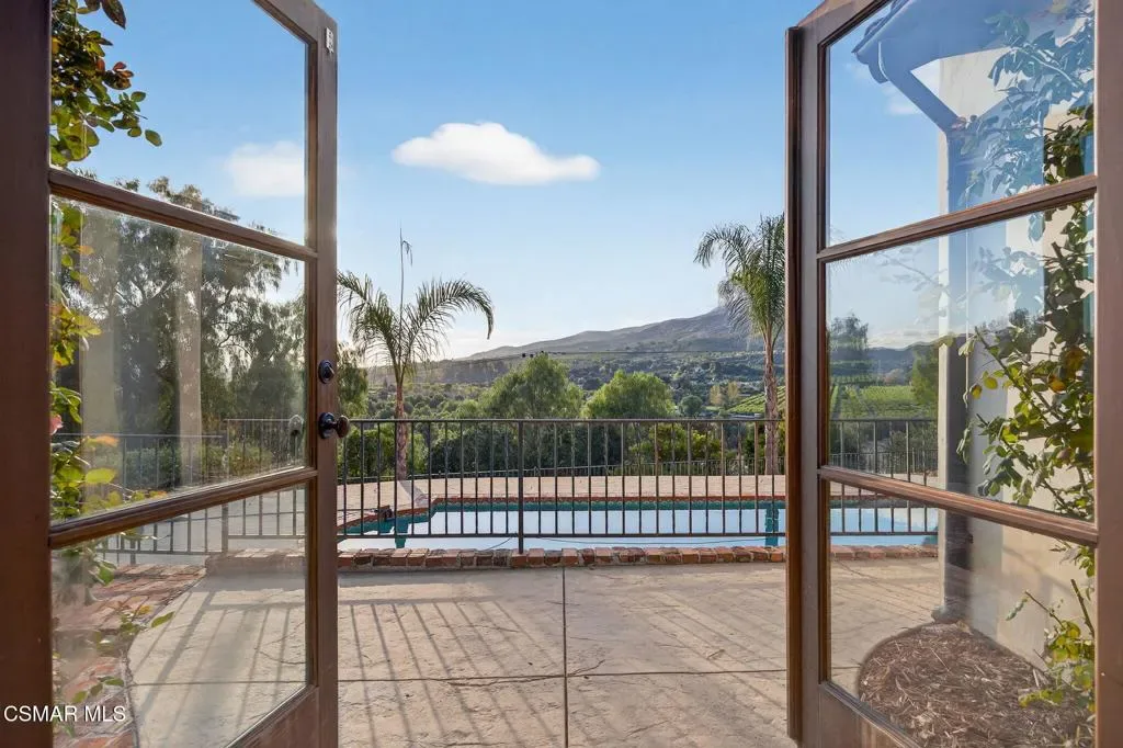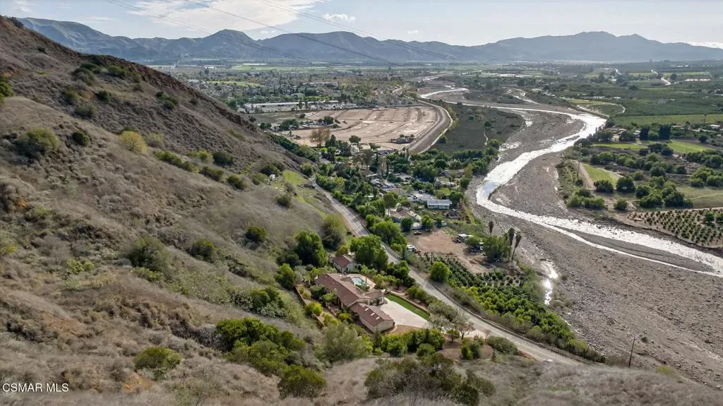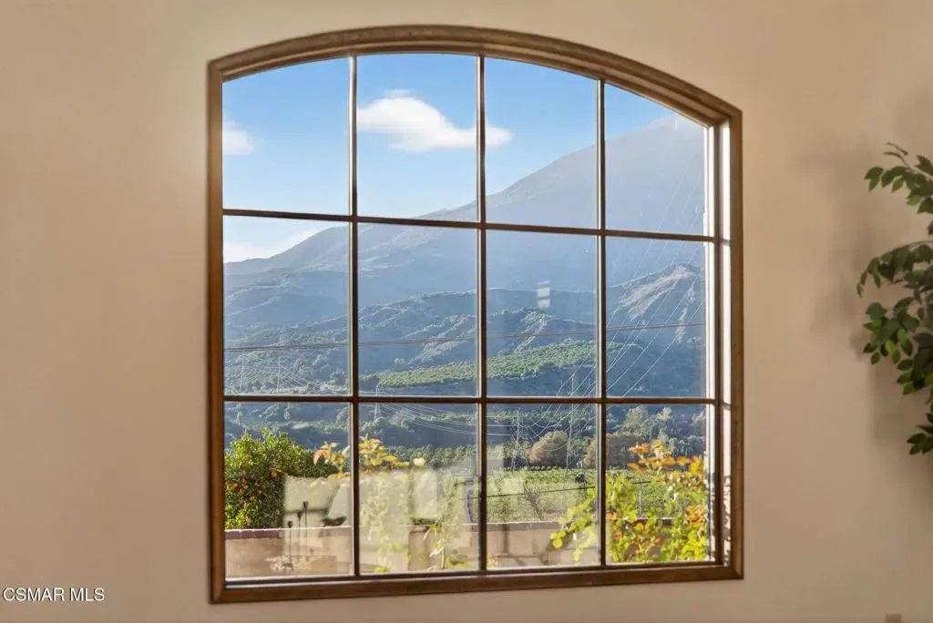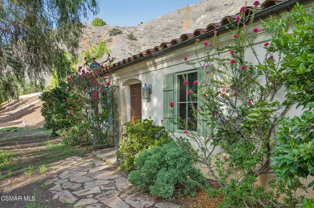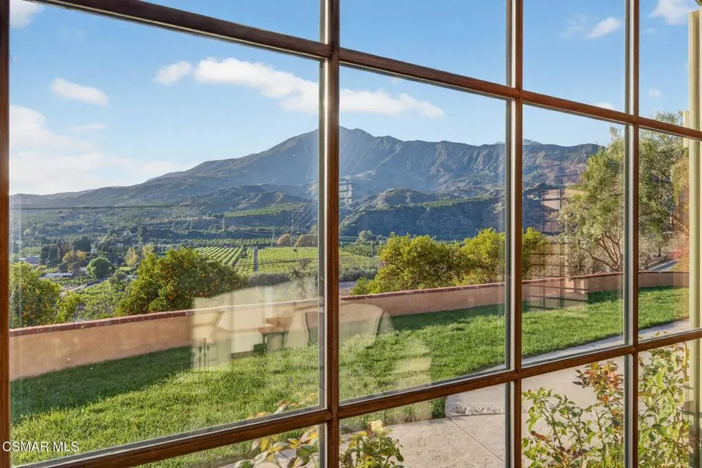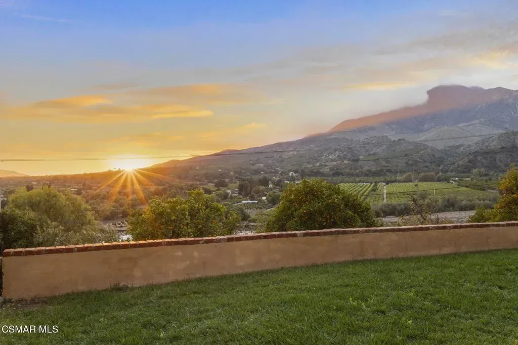 Welcome to this beautifully crafted Mediterranean custom estate set along one of Ventura County’s most scenic roads, where rolling hills and the Los Padres Mountains create an unforgettable backdrop. Resting on just over one acre, this private retreat boasts over 4,000 sqft. of estate living with endless possibilities. The main residence features 3,220 sqft., complemented by a separate 860 sqft. guest home designed as a mirror reflection of the main villa’s architectural charm. Step through the front courtyard and into a home rich with European ambiance and timeless character. The interiors blend Old-World Mediterranean craftsmanship with thoughtful modern touches – vaulted wood-beamed ceilings, authentic travertine flooring, custom finishes, and tall French patio doors that fill the home with natural light. The formal dining room flows seamlessly into the grand living room which is framed by two soaring pillars, creating an impressive entrance – an ideal setting for intimate dinners or lively gatherings. The kitchen offers both charm and functionality with granite counters, a glass-tile backsplash, Monogram appliances, beautifully built custom cabinetry, and a large walk-in pantry. A few steps down, a cozy family room with wood-like flooring and oversized bay windows takes full advantage of the setting – the sweeping mountain view truly takes center stage in this inviting space. The luxurious primary suite is a sanctuary of its own, featuring vaulted ceilings, a built-in coffee bar with refrigerator, and both a window and French doors that frame the mountain views and open directly to the private pool terrace. The spa-inspired bath includes dual sinks, a soaking tub, an enlarged walk-in tile shower, a separate water closet, a dedicated massage-table area, and a generous walk-in closet. The secondary bedrooms are great-sized, and the indoor laundry room provides exceptional utility with ample cabinetry and a convenient linen sink. Just outside, the estate invites year-round indoor-outdoor living with multiple covered patios, a built-in BBQ, and idyllic spaces for Al fresco dining or enjoying morning coffee overlooking the mountains. The gated pool area is perfectly positioned to capture the views as well, offering a serene, private retreat. The estate includes a 3-car garage, an exceptionally long driveway with room for all the toys, RV parking with hookups, and private parking for the guest house, which also features its own driveway and separate metered utilities – a rare and valuable benefit. Perfectly positioned across the property, the detached 2-bedroom, 1-bath guest home can be used for private quarters for extended family, luxurious guest space, or a desirable income-producing rental, the guest house elevates both the value and function of the compound. The grounds are embraced by mature fruit trees, avocado, orange, lemon, olive, and more, bringing both beauty and bounty throughout the seasons. With additional land and room for additional possibilities such as vineyards or future enhancements, the estate offers space to dream and expand. A true Mediterranean escape – custom crafted with style, surrounded by beauty, and designed to be lived in, loved, and shared.
