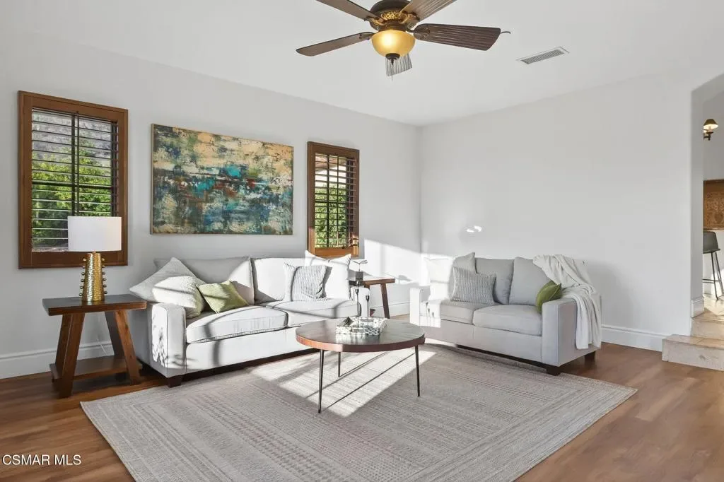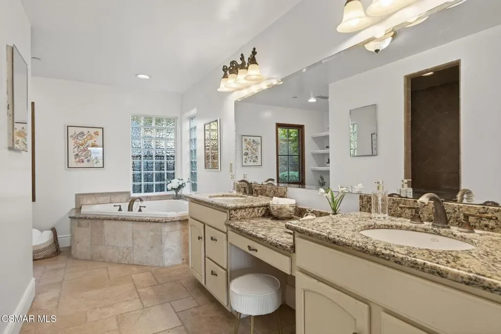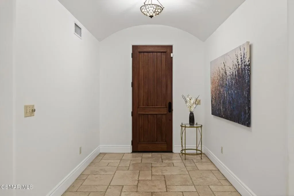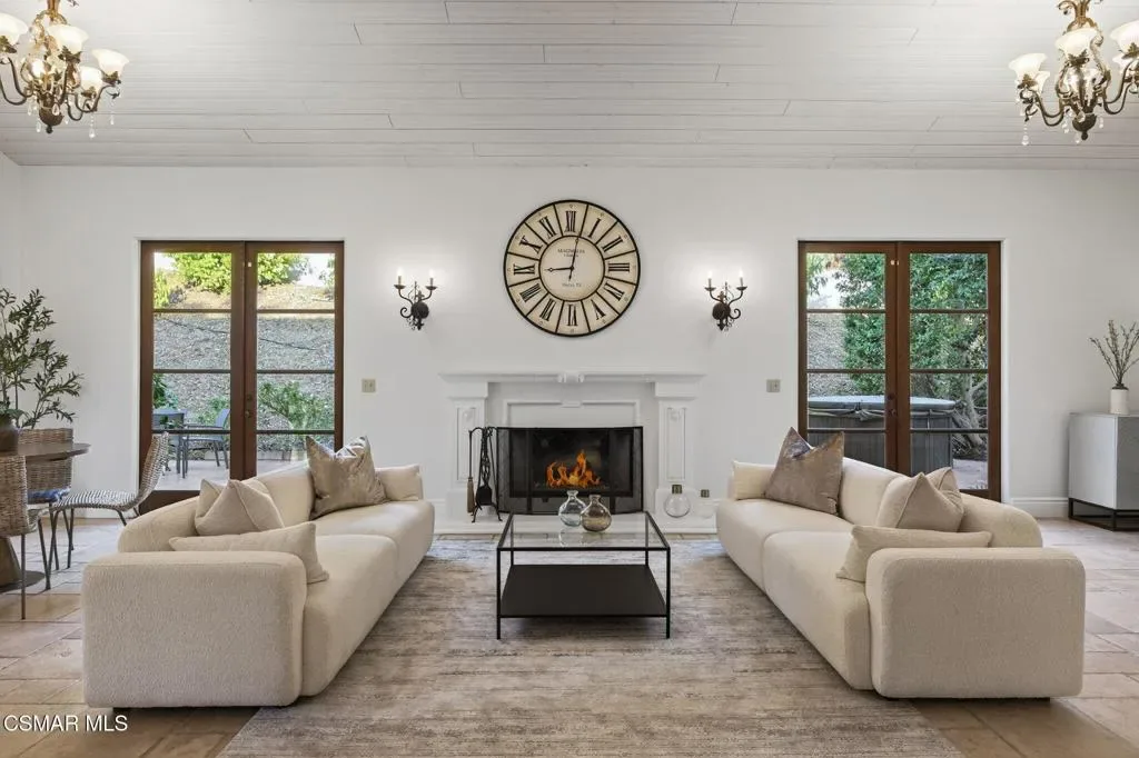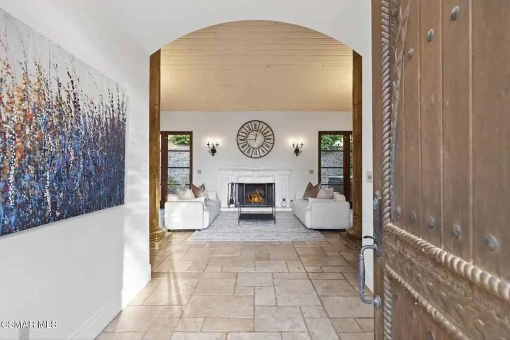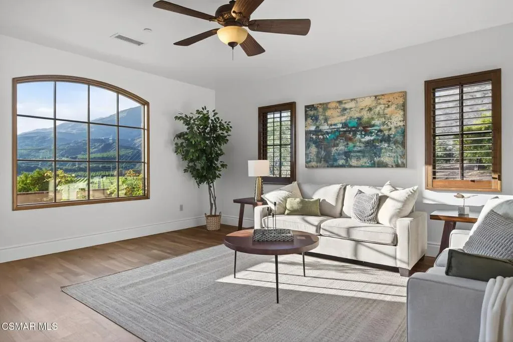 Welcome to this beautifully crafted Mediterranean custom estate set along one of Ventura County’s most scenic roads, where rolling hills and the Los Padres Mountains create an unforgettable backdrop. Resting on just over one acre, this private retreat boasts over 4,000 sqft. of estate living with endless possibilities. The main residence features 3,220 sqft., complemented by a separate 860 sqft. guest home designed as a mirror reflection of the main villa’s architectural charm. Step through the front courtyard and into a home rich with European ambiance and timeless character. The interiors blend Old-World Mediterranean craftsmanship with thoughtful modern touches – vaulted wood-beamed ceilings, authentic travertine flooring, custom finishes, and tall French patio doors that fill the home with natural light. The formal dining room flows seamlessly into the grand living room which is framed by two soaring pillars, creating an impressive entrance – an ideal setting for intimate dinners or lively gatherings. The kitchen offers both charm and functionality with granite counters, a glass-tile backsplash, Monogram appliances, beautifully built custom cabinetry, and a large walk-in pantry. A few steps down, a cozy family room with wood-like flooring and oversized bay windows takes full advantage of the setting – the sweeping mountain view truly takes center stage in this inviting space. The luxurious primary suite is a sanctuary of its own, featuring vaulted ceilings, a built-in coffee bar with refrigerator, and both a window and French doors that frame the mountain views and open directly to the private pool terrace. The spa-inspired bath includes dual sinks, a soaking tub, an enlarged walk-in tile shower, a separate water closet, a dedicated massage-table area, and a generous walk-in closet. The secondary bedrooms are great-sized, and the indoor laundry room provides exceptional utility with ample cabinetry and a convenient linen sink. Just outside, the estate invites year-round indoor-outdoor living with multiple covered patios, a built-in BBQ, and idyllic spaces for Al fresco dining or enjoying morning coffee overlooking the mountains. The gated pool area is perfectly positioned to capture the views as well, offering a serene, private retreat. The estate includes a 3-car garage, an exceptionally long driveway with room for all the toys, RV parking with hookups, and private parking for the guest house, which also features its own driveway and separate metered utilities – a rare and valuable benefit. Perfectly positioned across the property, the detached 2-bedroom, 1-bath guest home can be used for private quarters for extended family, luxurious guest space, or a desirable income-producing rental, the guest house elevates both the value and function of the compound. The grounds are embraced by mature fruit trees, avocado, orange, lemon, olive, and more, bringing both beauty and bounty throughout the seasons. With additional land and room for additional possibilities such as vineyards or future enhancements, the estate offers space to dream and expand. A true Mediterranean escape – custom crafted with style, surrounded by beauty, and designed to be lived in, loved, and shared.