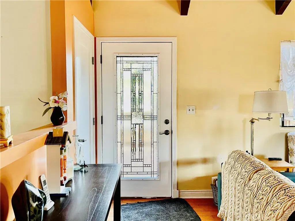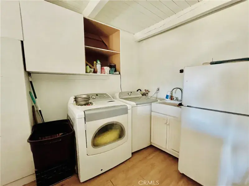 The lower level has its own private entrance, as well as convenient interior access via the staircase. Here you’ll find two additional bedrooms with beamed ceilings and ceiling fans, a full bathroom with tile flooring and a jetted tub, a separate living room, and a laundry room. This space can easily be converted back to a 2-unit home with 2 bedrooms and 1 bath each.