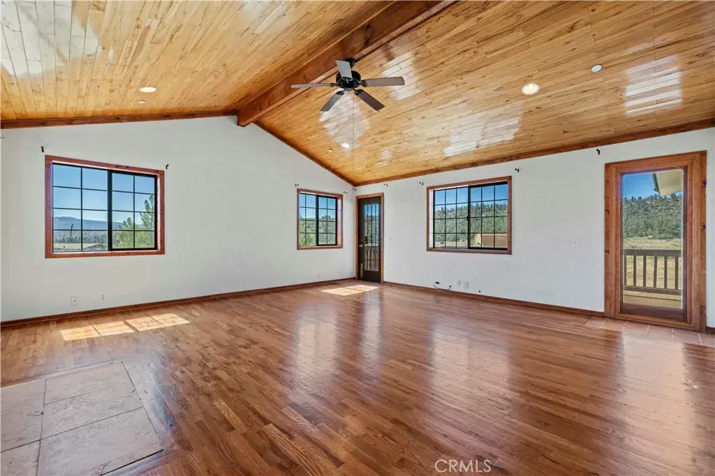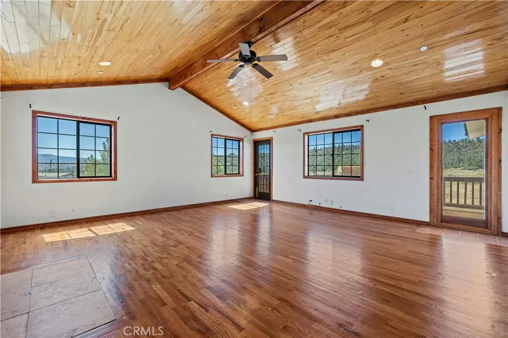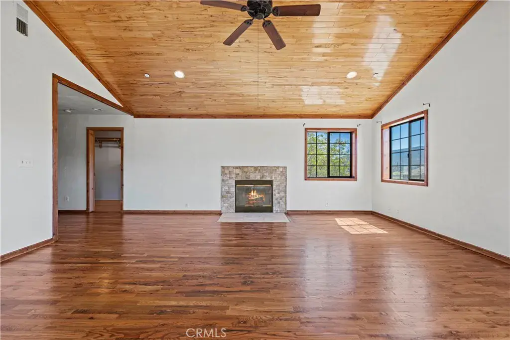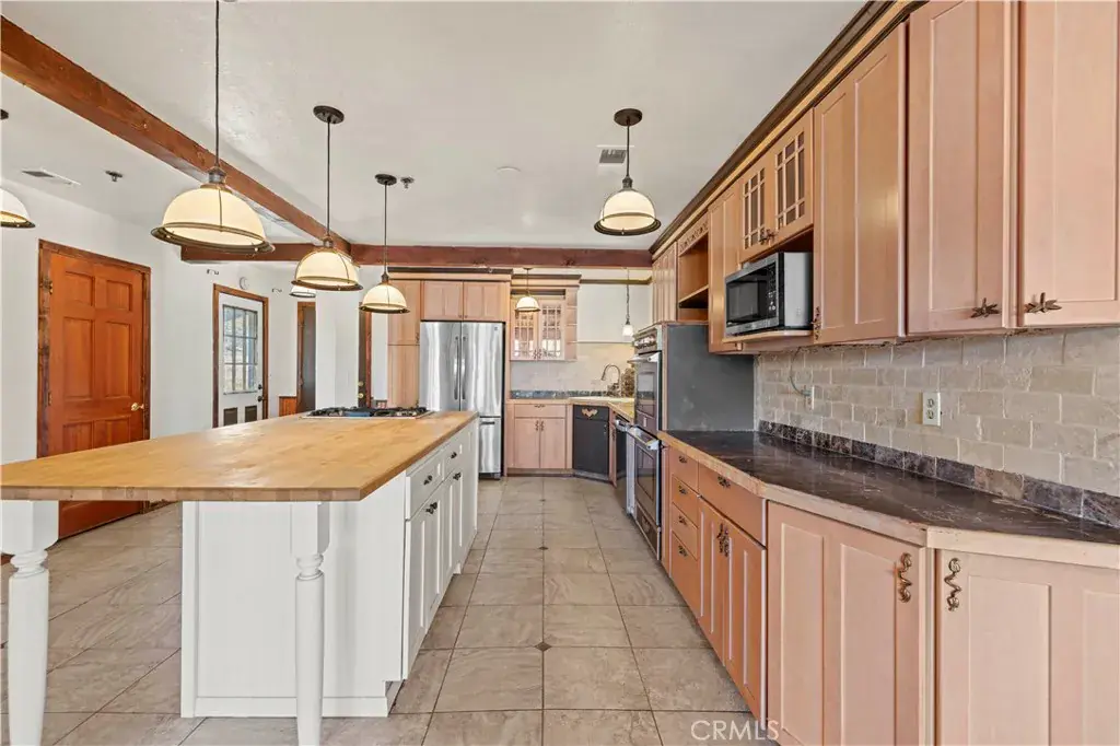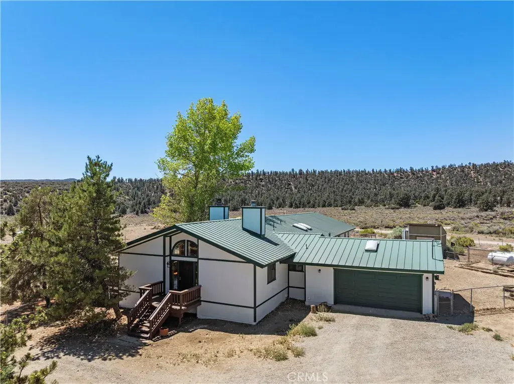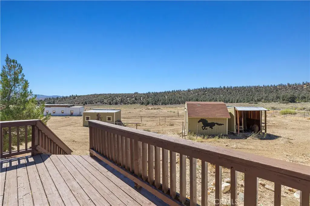 Nestled in the mountains and surrounded by natural beauty, this magnificent estate combines timeless craftsmanship with modern updates on over 5 acres bordering 600 square miles of National Forest. Recently refreshed with new exterior and interior paint and beautifully refinished hardwood floors, the single story custom home offers sweeping panoramic views and trails right outside your door. The residence features 5 bedrooms, 2.5 bathrooms, and nearly 3,600 square feet of thoughtfully designed living space. The expansive living room showcases vaulted ceilings with exposed beams, while the chef’s kitchen is equipped with a walk in pantry, double oven, marble countertops, artistic backsplash, custom cabinetry, and a striking butcher block island. Radiant heated floors warm the kitchen and dining areas, and three fireplaces add inviting charm throughout the home. The primary suite is a private retreat with vaulted ceilings accented in exotic Asian birch, a cozy fireplace, and a spa inspired bath with a cast iron tub and oversized shower. Built for both beauty and resilience, the property includes a lifetime metal roof, full sprinkler system, dual propane tanks, boxed in eaves, complete fencing with an electric gate, and a backup generator powering the entire home and well pump. Equestrian facilities include corrals and a powered tack room, offering a ready made retreat for horse enthusiasts. Located just 45 minutes from Santa Clarita, this rare estate delivers the perfect blend of seclusion, modern updates, and timeless natural beauty.