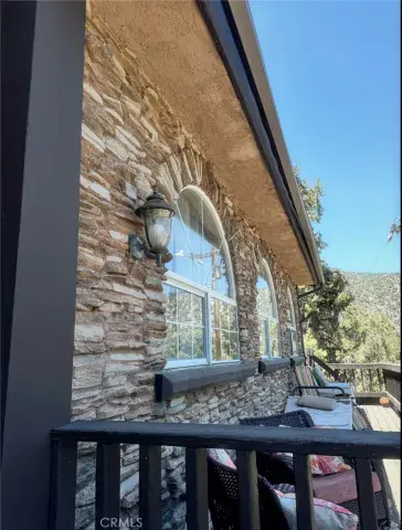 Welcome to your dream mountain home! Tucked away in the tranquil beauty of the mountains, this exquisite custom-built residence combines timeless rustic charm with modern elegance. The expansive stone and wood façade is complemented by large arched and panoramic windows that flood the interior with natural light and frame incredible views of the surrounding forest and mountains. Boasting a spacious multi-level layout, this home features vaulted ceilings, a striking stone chimney, and generous outdoor patios perfect for entertaining year-round. The robust retaining wall and landscaped gardens enhance privacy while adding to the home’s rustic character.