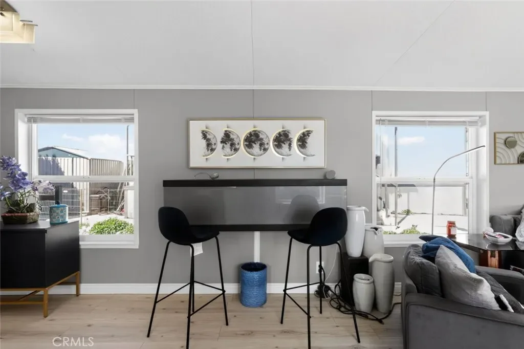 This charming residence boasts two bedrooms and two bathroom, offering a cozy and inviting atmosphere within its 880 square feet of living space. Inside you’ll discover an open floor plan adorned with laminate flooring, creating a modern and stylish ambiance. The cathedral ceiling adds a touch of elegance, while ample storage space ensures convenience and organization. The bedrooms are flooded with natural light, providing a pleasant and cheerful setting.