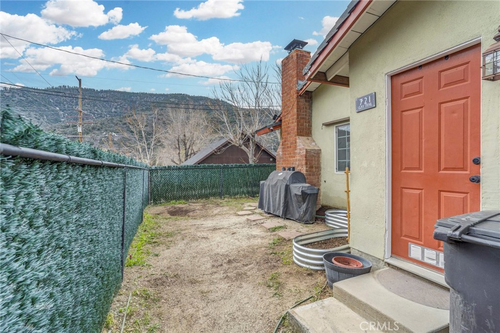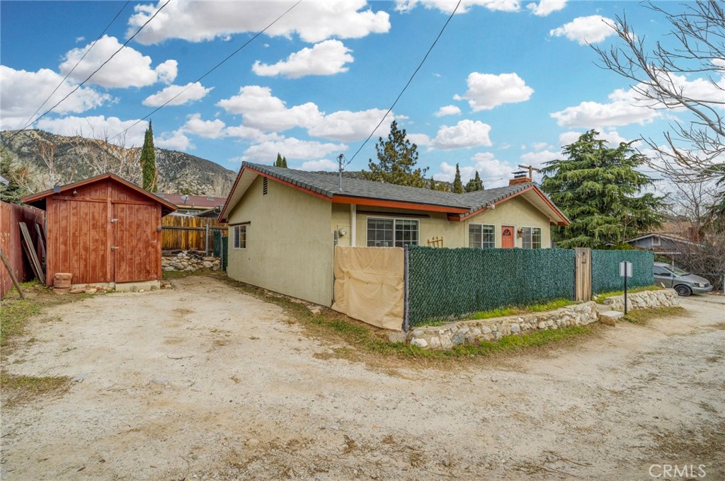 Outside, the fully fenced yard provides privacy and usable outdoor space, complete with garden beds, compost bin, and a metal shed for additional storage. The setting offers a peaceful mountain backdrop while maintaining accessibility and ease of year-round living.
