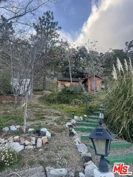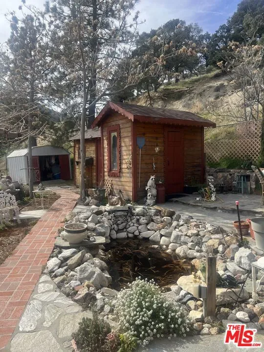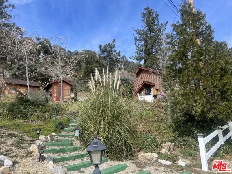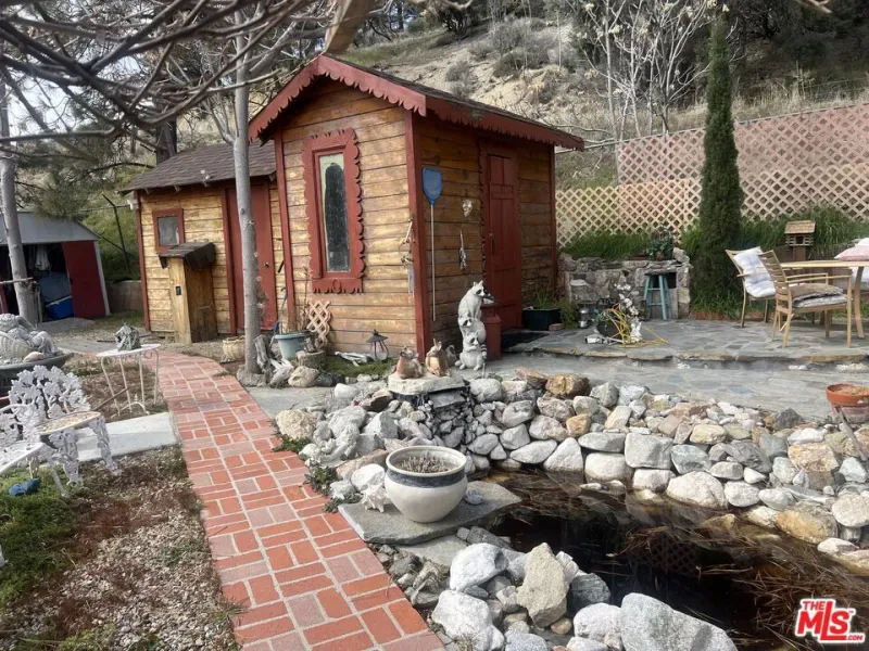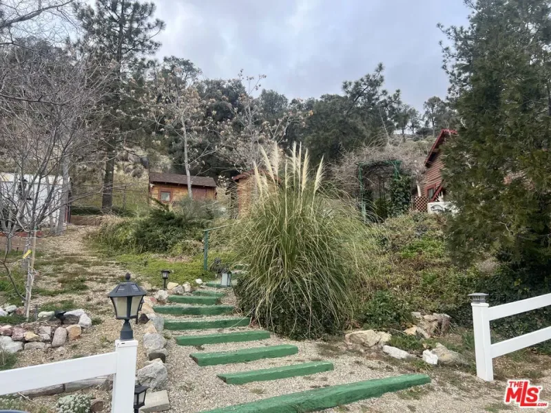 Charming private country cabin nestled amongst the trees, fresh air and mountains of Frazier Park. This adorable home sits perched on a hill surrounded by nature on a fenced cul de sac with three lots totaling almost 16000 sft! First time on the market in about 60 years. There are several sheds, a private sauna, a separate laundry shed with washer and dryer, two koi ponds (one with a waterfall which could also be converted to a jacuzzi) the other almost as big as a pool. A covered carport, newer generator installed in 2024 and very well maintained garden and home with custom wood carved cabinets, walls and decorative edging throughout, this charming place is truly one of a kind. There are two additional parcels that come with the sale, 732 Avalon APN 259-183-14-00-1 and 736 Avalon APN 259-183-11-00-2, for a total of 15,681 sf lot. Loft upstairs may add additional sq footage. Buyer to do all due diligence regarding square footage, boundaries etc.