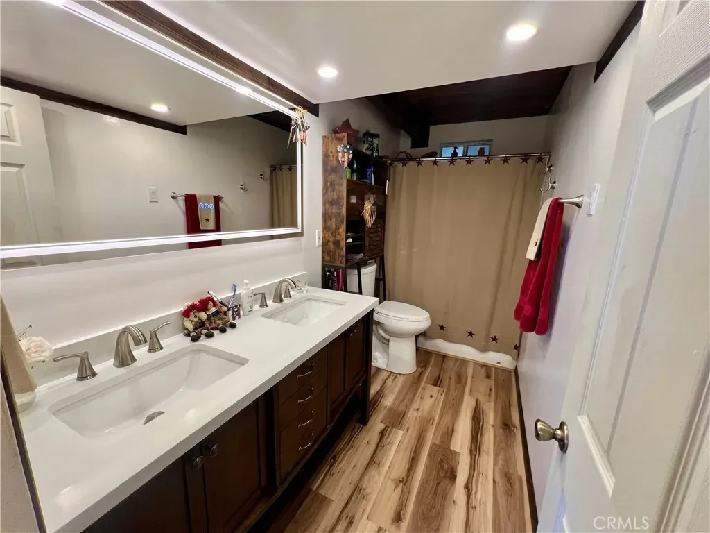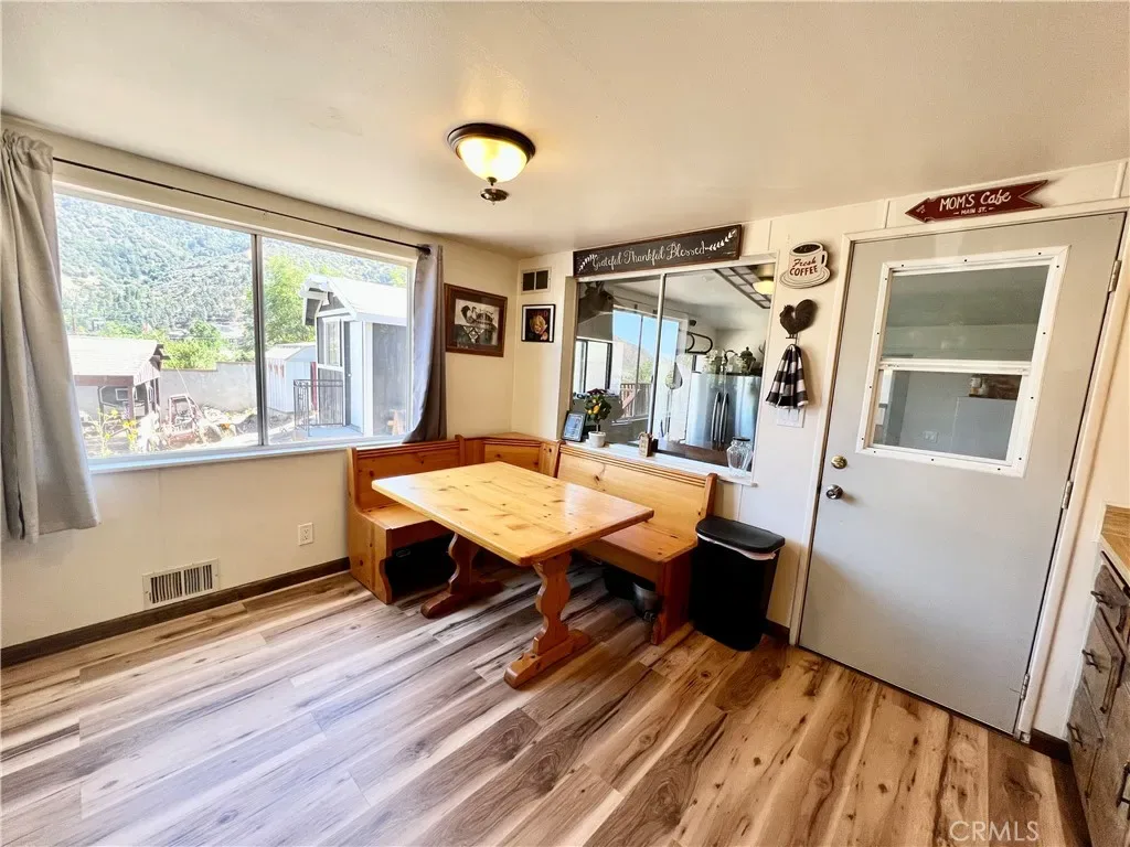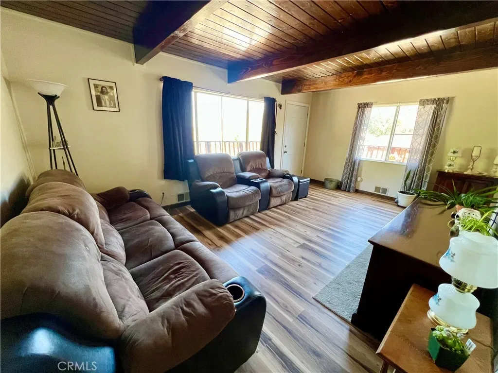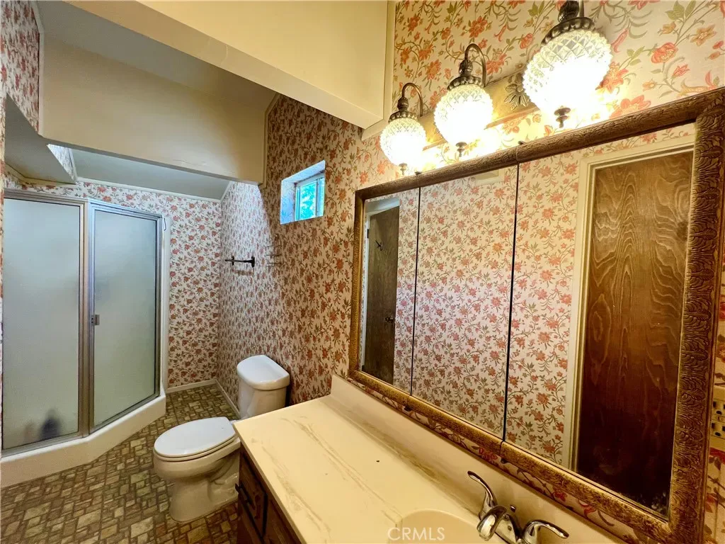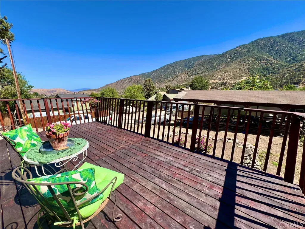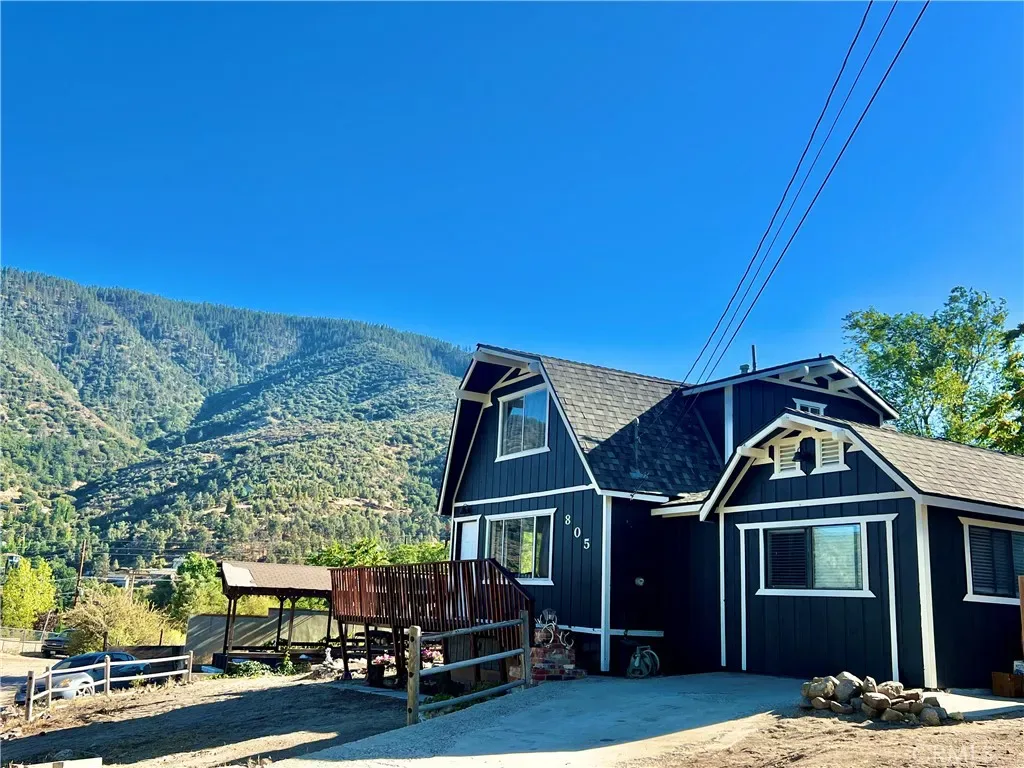GREAT FAMILY HOME ON 2 COMBINED LOTS!! This 3 bedroom 2 bath home with freshly painted exterior and newer roof is centrally located on the “Sunny Side” of Frazier Park just off the paved road on a desirable oversized corner lot, within walking distance to restaurants and shops. The kitchen has new laminate flooring, lots of cabinets and a dining area with large windows to let in the sunlight and beautiful panoramic mountain views! Next to the kitchen is a bonus room for plenty of storage or extra living space with a piano that could be included in the sale. The inviting living room has a charming rustic knotty pine ceiling and new laminate flooring plus big windows. Just off the living room is the newly updated bathroom including an espresso colored vanity with white top, undermounted dual sinks, and a fogless touch screen dimmable mirror with ambiance lighting, 21″ tall toilet and new flooring. Step down to the private primary bedroom with a high ceiling and His and Hers walk-in closets. Upstairs you’ll find 2 freshly painted light and bright bedrooms with a Jack-n-Jill bathroom. Indoor laundry room with retractable stairs leading to attic storage space. The spacious yard offers an amazing new deck with solar lighting to sit and relax while taking in the spectacular views and starry nights! Plenty of room to BBQ and entertain with lots of sunny garden space including a cute shed for your tools. Covered RV parking, concrete driveway and a side yard that could provide more parking or play space. Located just 40 minutes to Santa Clarita or Bakersfield in a quaint mountain community where you can enjoy a slower paced lifestyle and four seasons of the lovely nature that surrounds you!