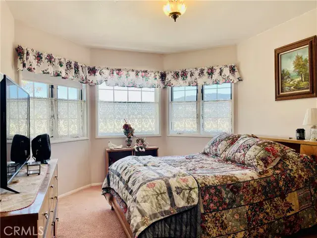 Two spacious bedrooms with mirrored closets and cozy sitting areas by the windows.