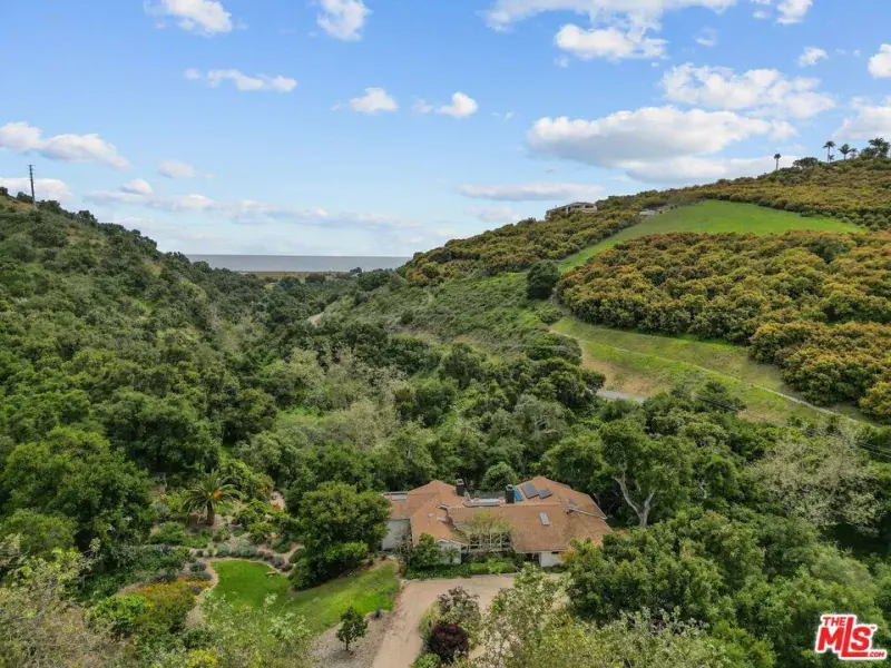 10-acre unique El Capitan Ranch offering. Exclusive coastal gated community with access to a private beach. The 4500-sf contemporary ranch home is also privately gated and features 5 bedrooms and 5 baths, including a guest suite and media/game room. It is open, light, and bright, with vaulted ceilings, chef’s kitchen, butler’s pantry, 3000-bottle temperature-controlled wine room, solar w/battery backup, and Tesla charging. The lush, park-like setting is breathtaking, with a running stream, 15′ waterfall, swimming hole, tropical walkways, oaks, and sycamores. A true one-of-a-kind property.