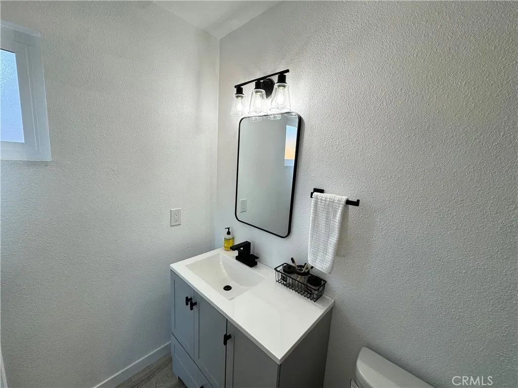 Both bathrooms have been fully upgraded with new vanities, fixtures, mirrors, lighting, and tile. The front bath offers a dual-sink vanity with a tub tiled to the ceiling, while the primary bath features a beautifully tiled floor-to-ceiling shower. Sleek black fixtures throughout complete the modern design.
